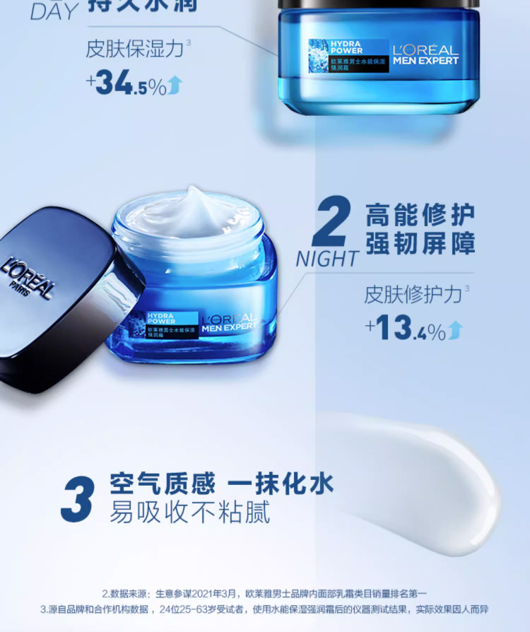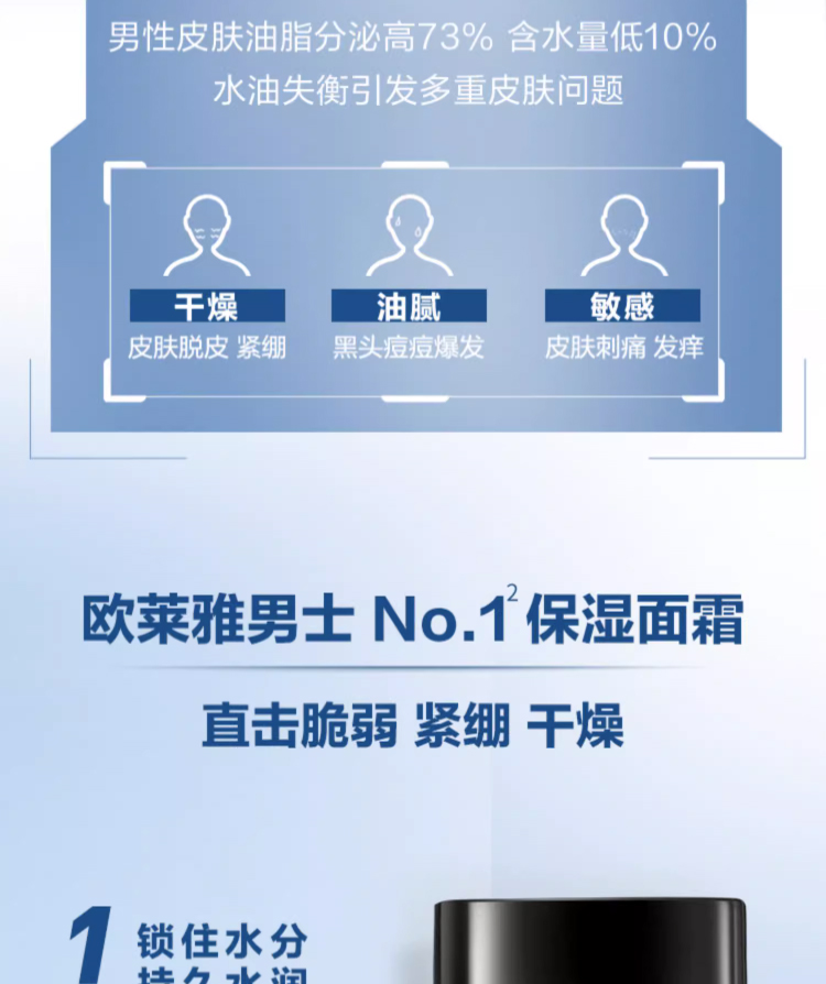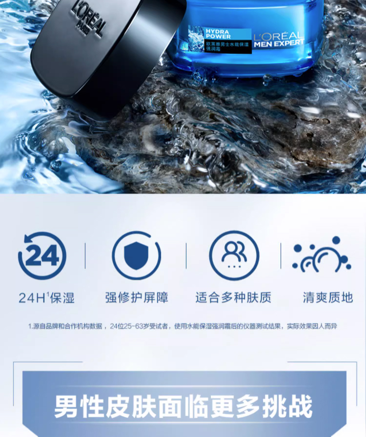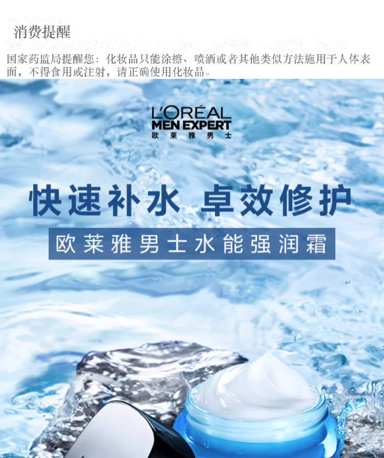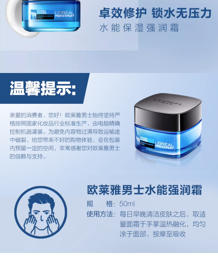 商品名称:L'oreal/欧莱雅 男士水能保湿强润霜 50ml 面霜补水保湿