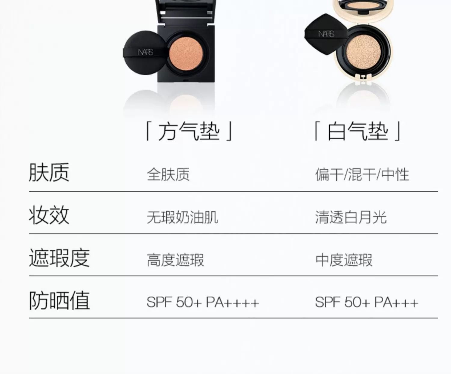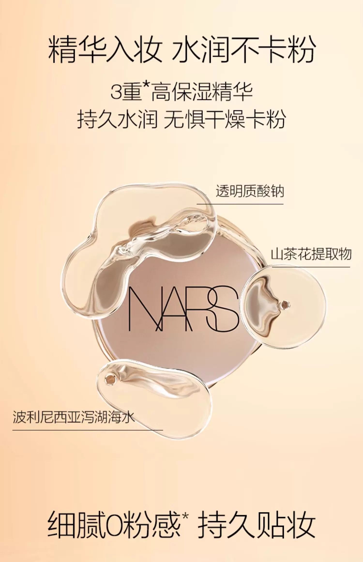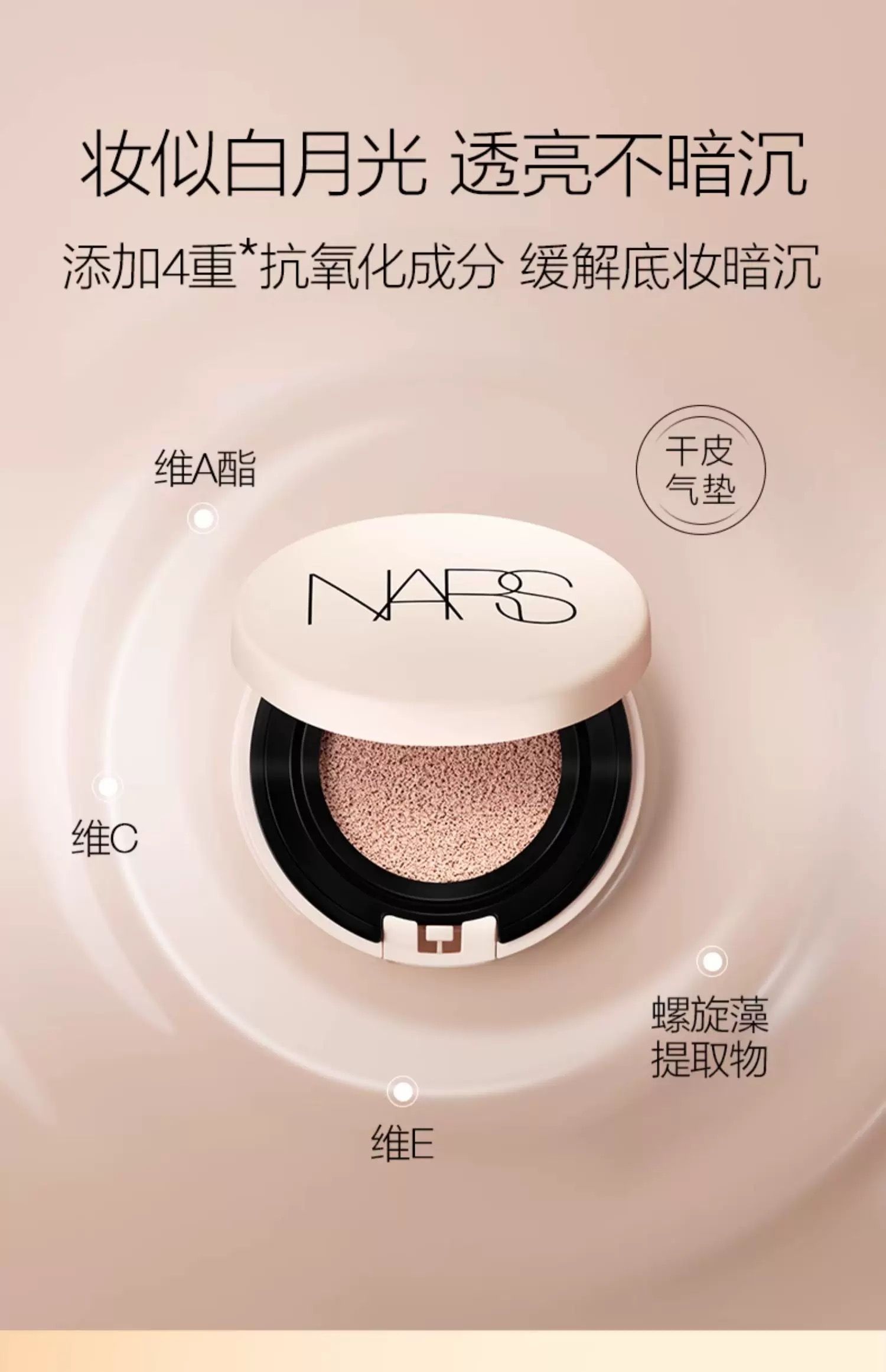 商品名称:NARS/纳斯 水凝光润遮瑕保湿持久粉底液气垫 一盒一芯12g