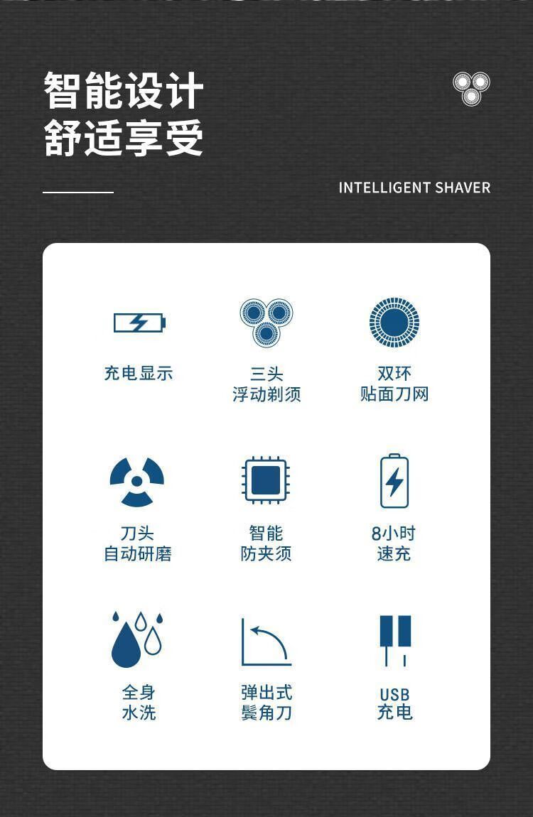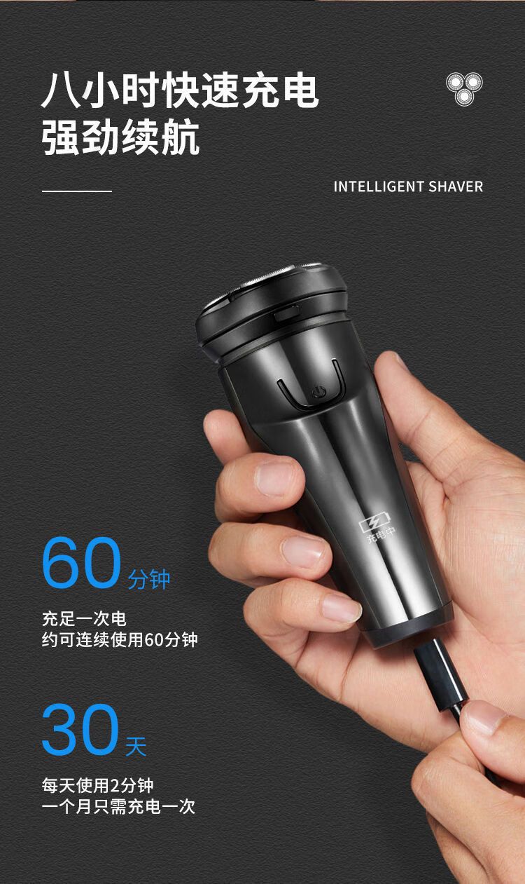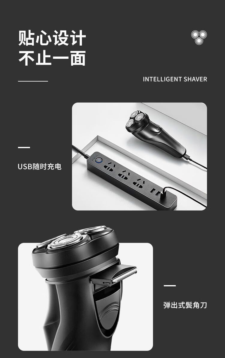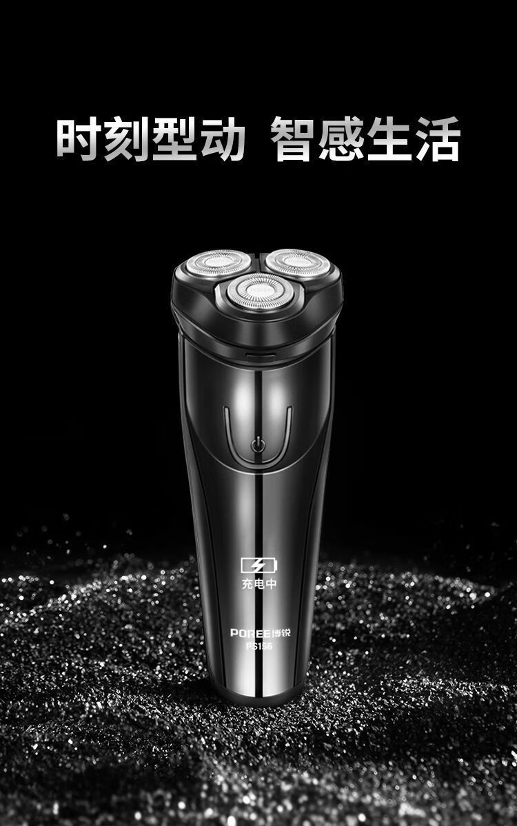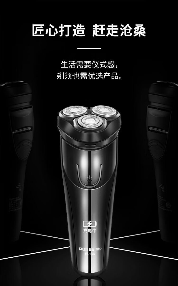 商品名称:博锐 剃须刀电动充电式刮胡刀全身水洗3D质感浮动智能防夹须usb PS156银黑色