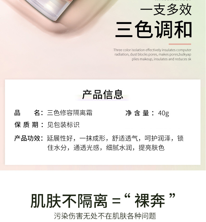 商品名称:色娜娜三色修容隔离霜 水润保湿清透 40g