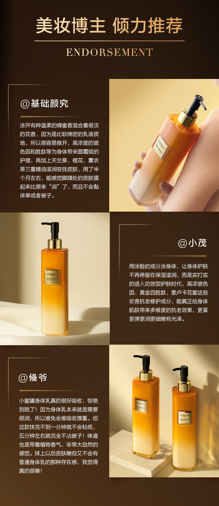 商品名称:L'oreal/欧莱雅 金致臻颜花蜜小蜜罐身体乳 250ml 精华润肤乳