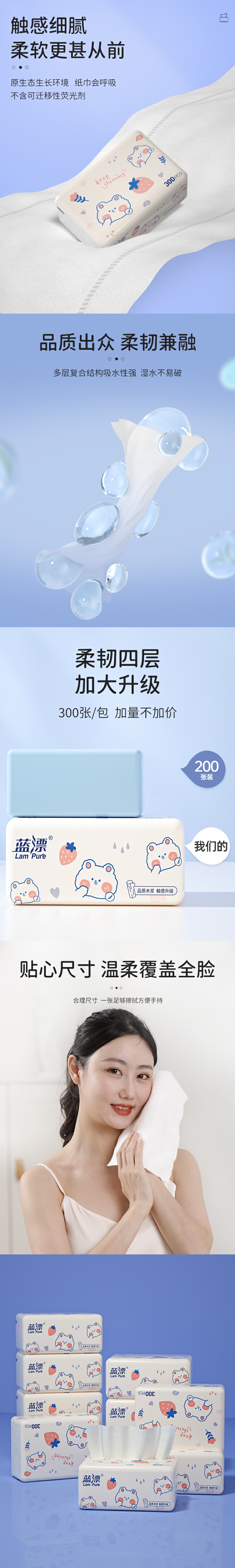 商品名称:蓝漂亲肤面巾纸30包LP-42724白色抽纸30包
