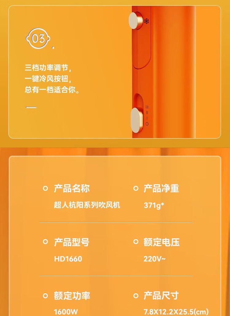 商品名称:超人(SID)水润负离子吹风机 HD1660