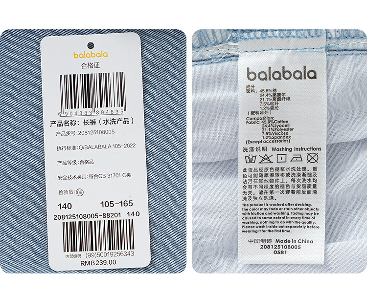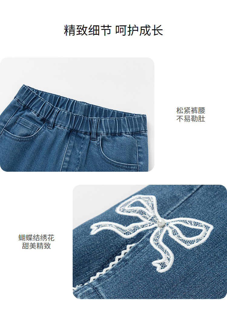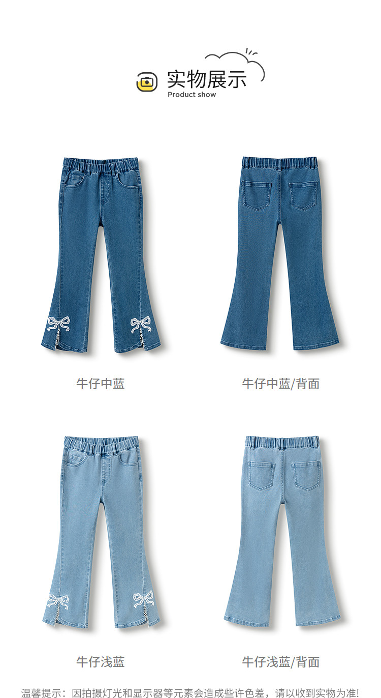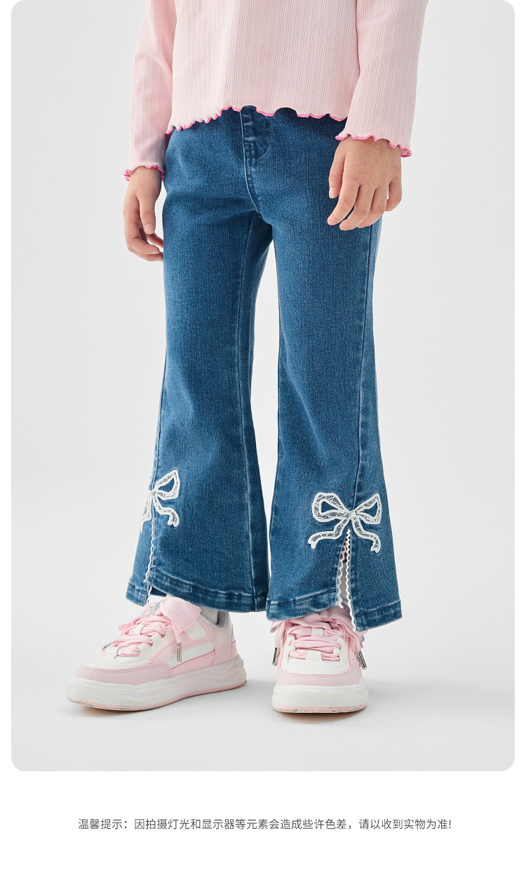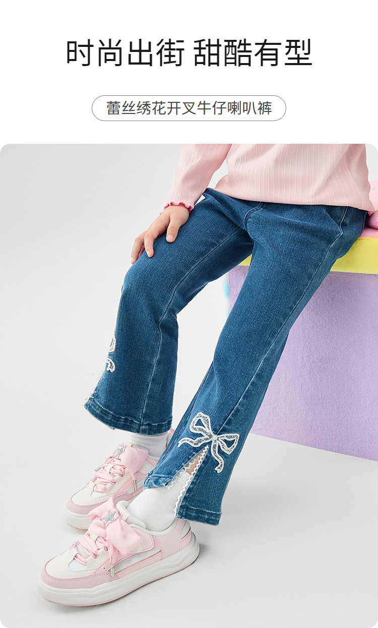 商品名称:巴拉巴拉童装女童牛仔裤儿童开叉喇叭裤蕾丝2025新款春装长裤 806789