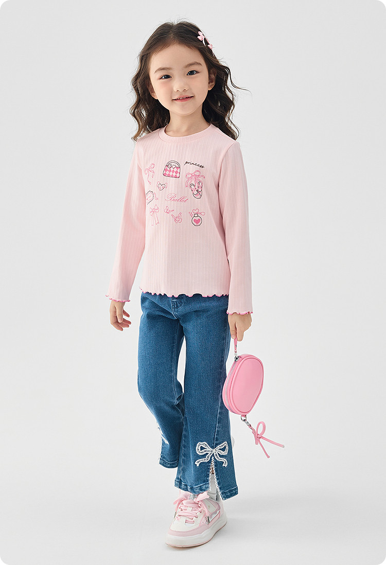 巴拉巴拉童装女童牛仔裤儿童开叉喇叭裤蕾丝2025新款春装长裤 806789