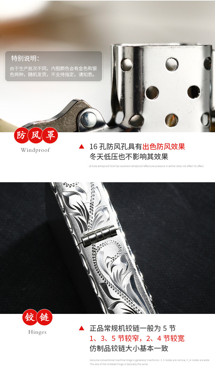 商品名称:打火机正版双面侧雕煤油防风信封花礼盒男士送礼 134110