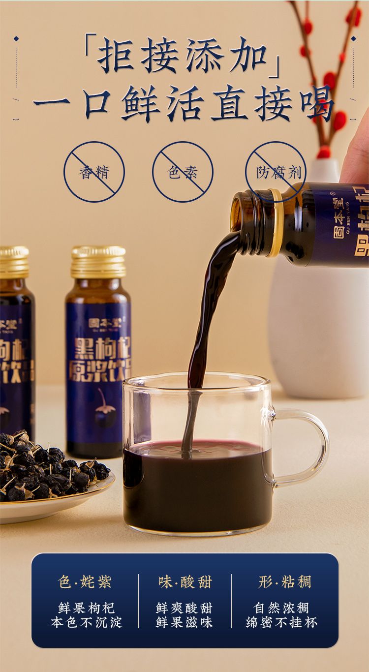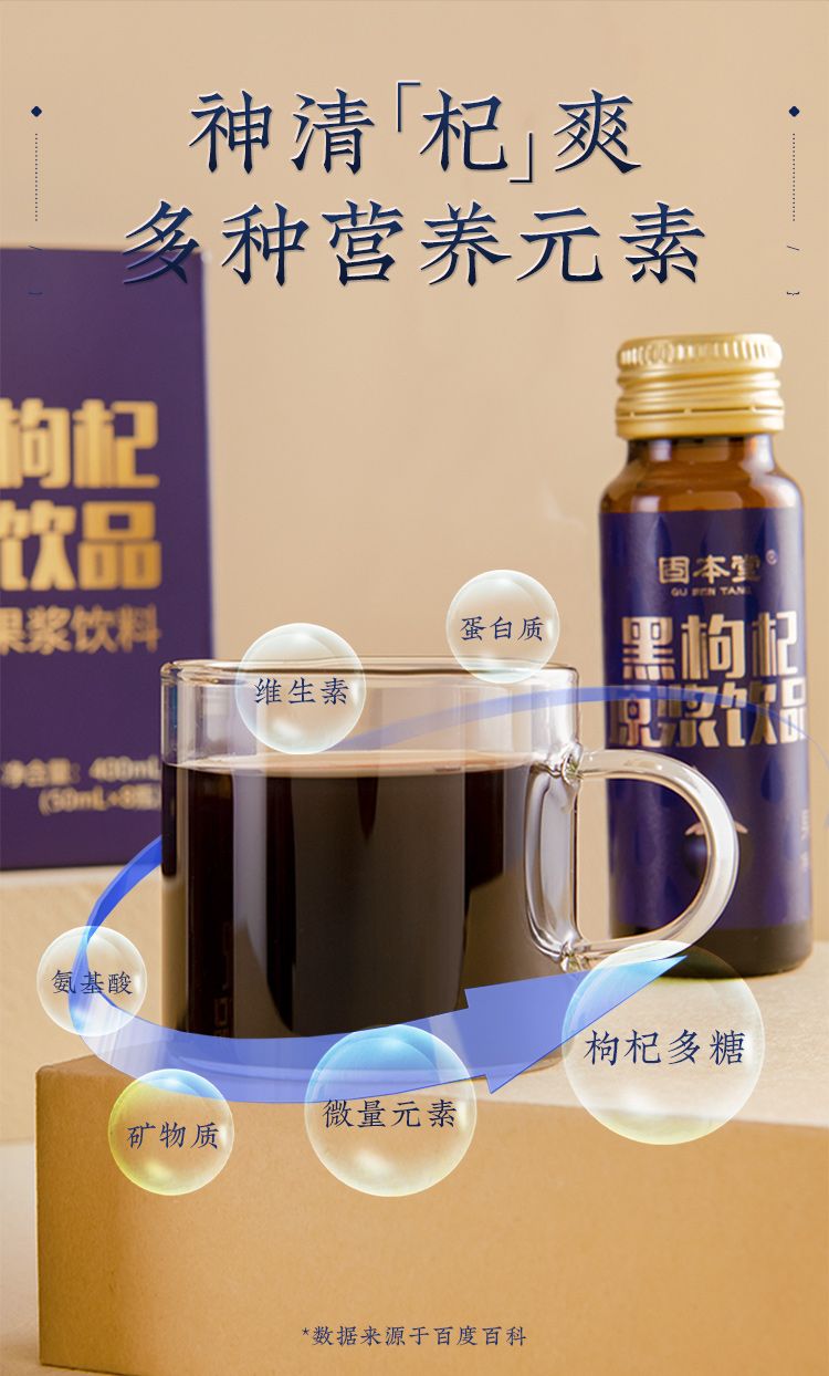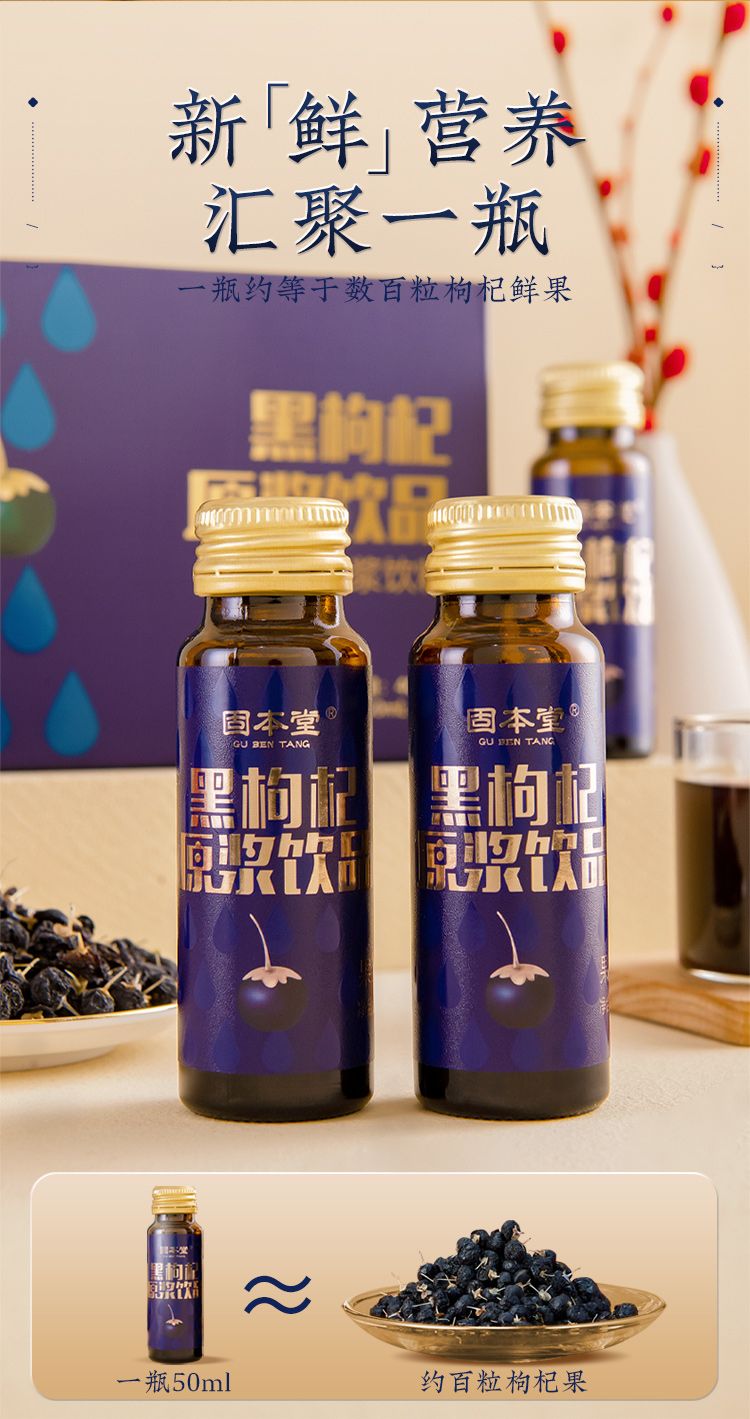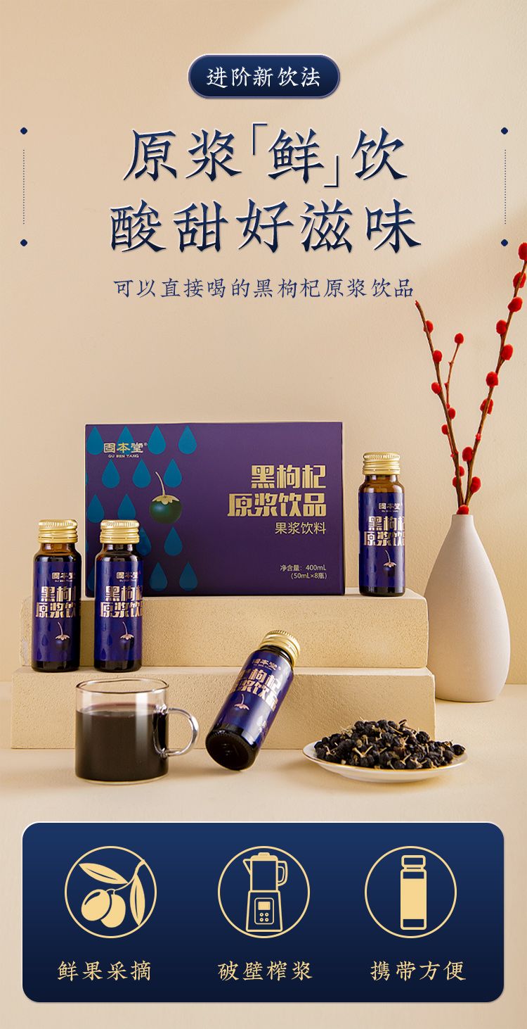 商品名称:固本堂黑枸原浆饮品400ml瓶装鲜果枸杞汁青海破壁花青素黑苟杞便携原液增父亲礼物(50ml*8瓶)