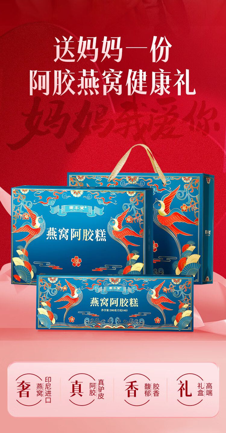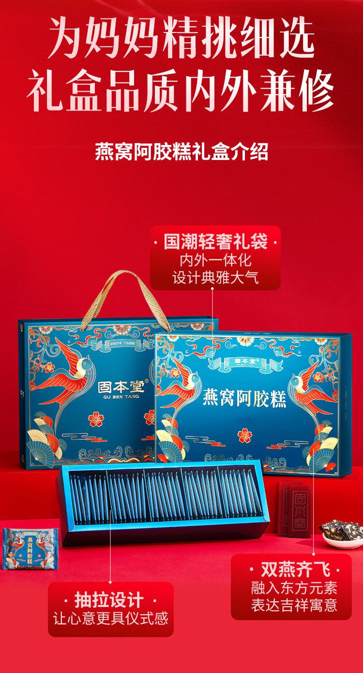 固本堂燕窝阿胶糕200克礼盒送长辈补品营养品气血