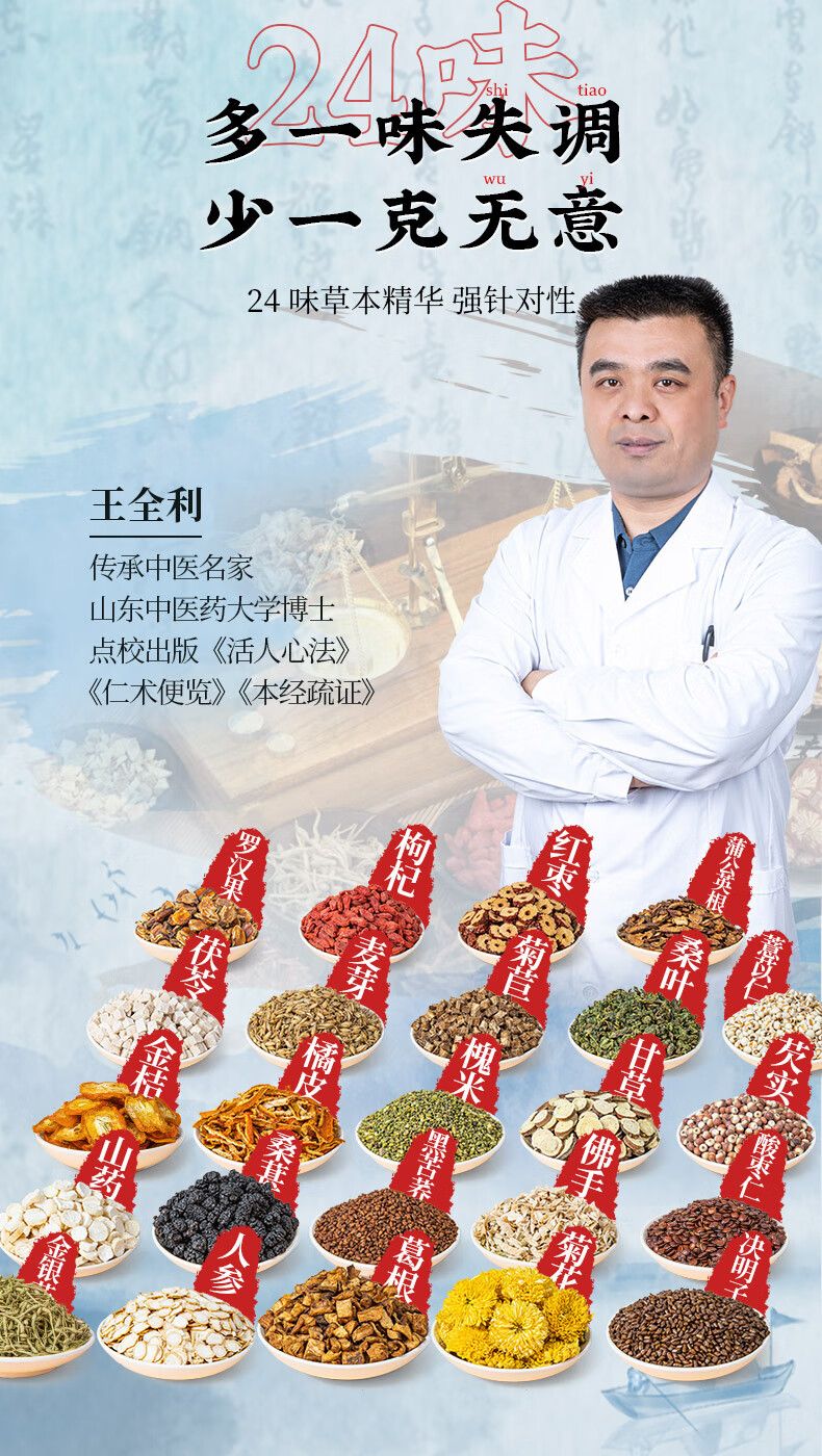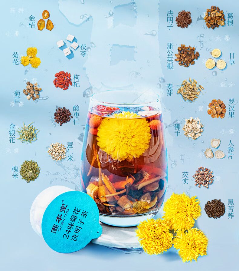 商品名称:固本堂 24味菊花枸杞决明子茶男士熬夜养生茶金银花人参枸杞茶84g*2盒(共10罐)