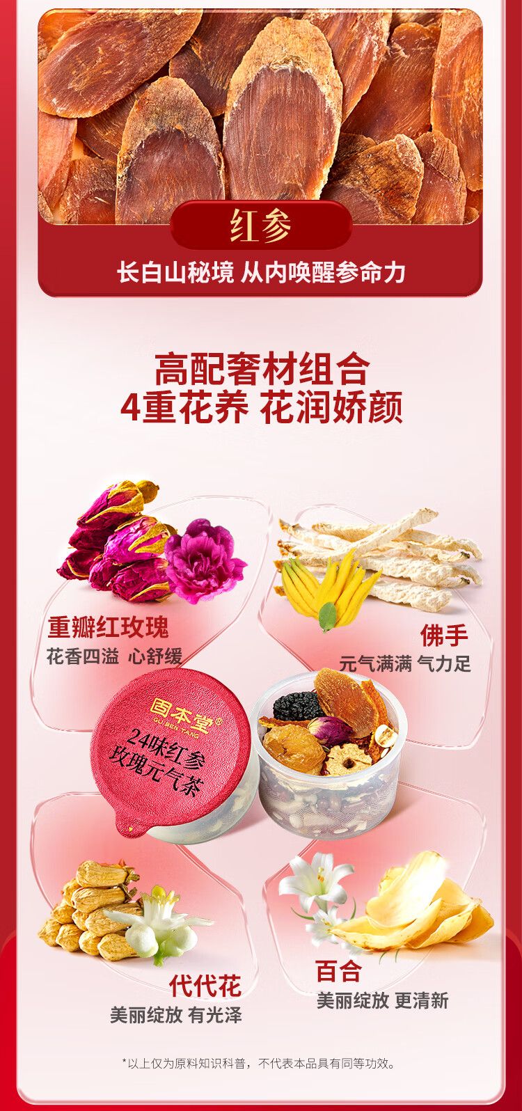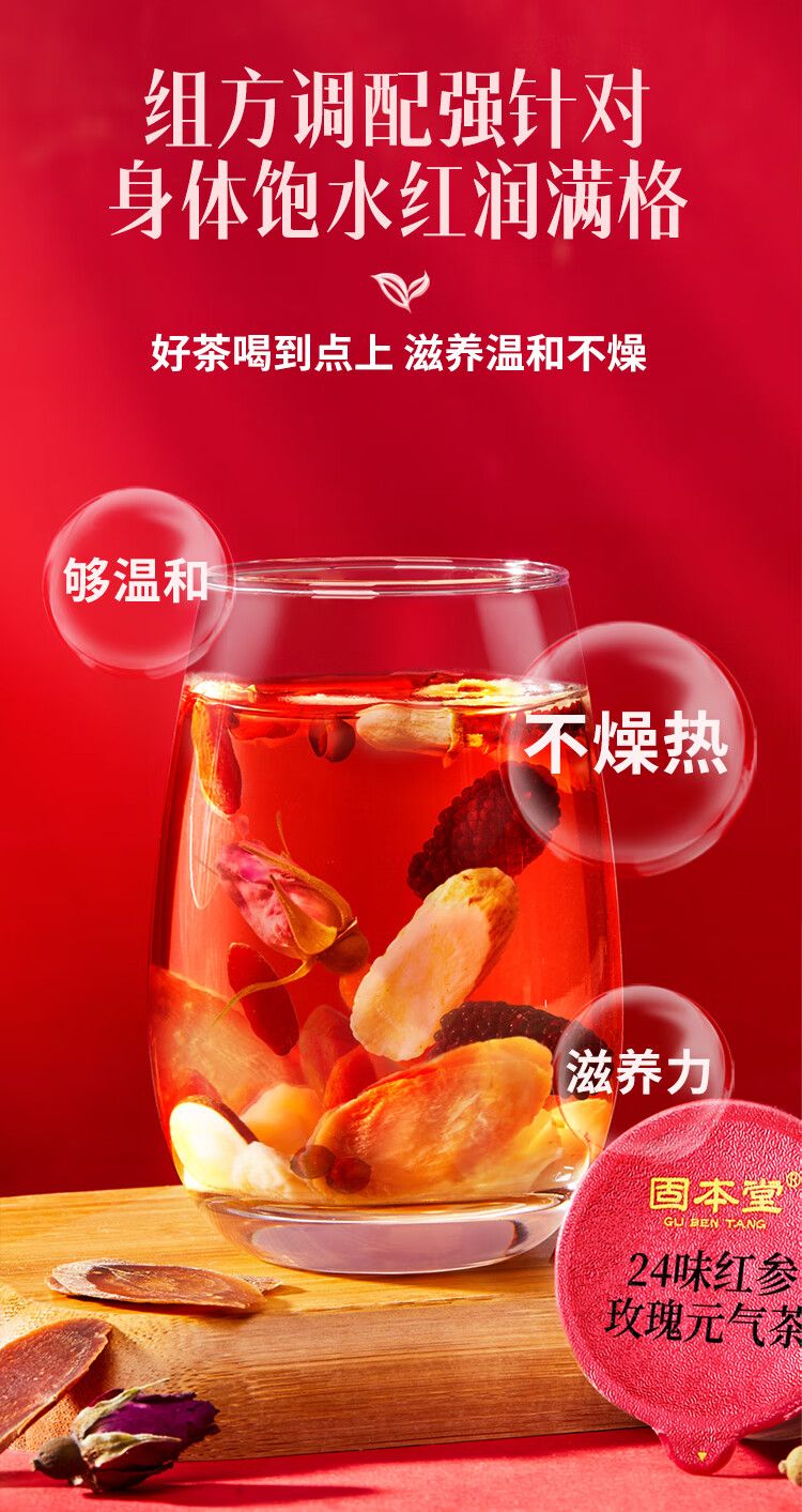 固本堂二十四味红参玫瑰元气茶500克