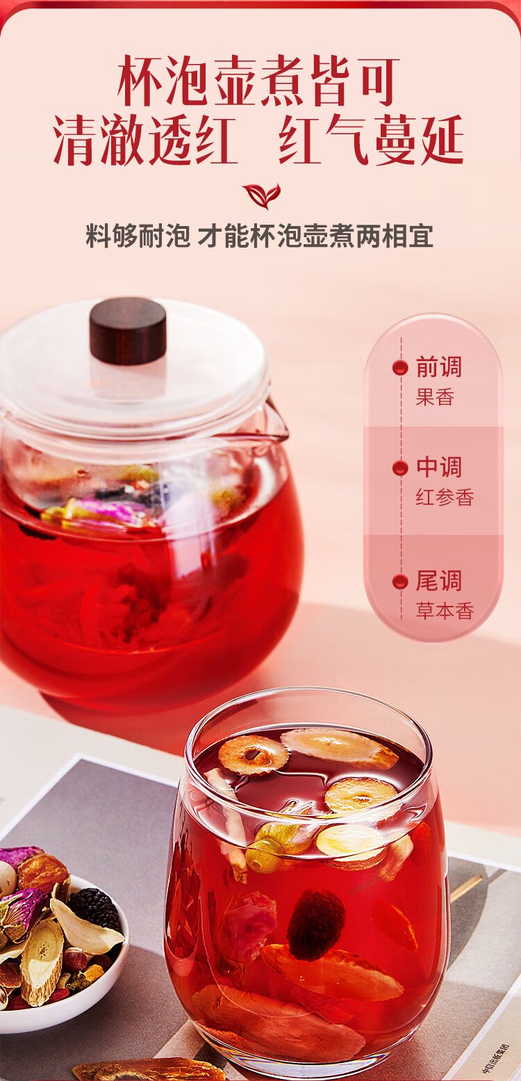 固本堂 24味红参玫瑰元气茶500克 女人气血养生茶调理女神茶 红枣枸杞桂圆茶