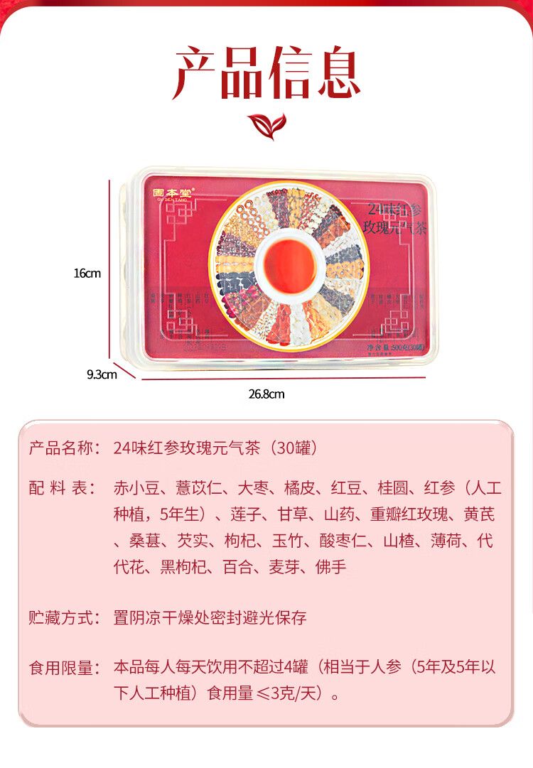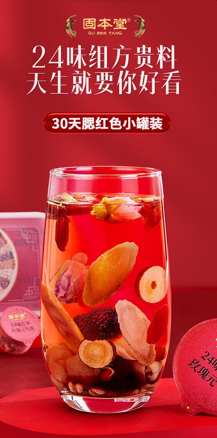 商品名称:固本堂 24味红参玫瑰元气茶500克 女人气血养生茶调理女神茶 红枣枸杞桂圆茶