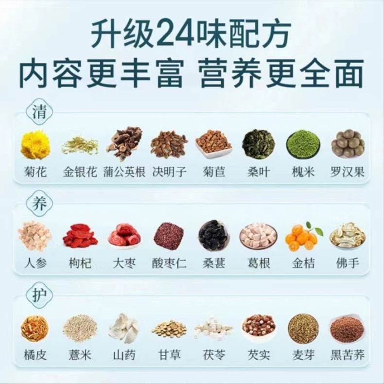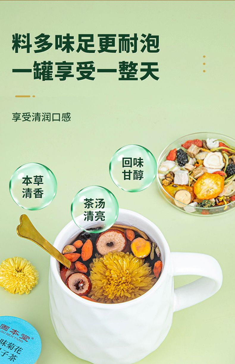 商品名称:固本堂 24味菊花枸杞决明子茶女士款500克15罐礼盒 金银花甘草葛根茯苓金银花大枣山药人参桑葚金桔花草茶
