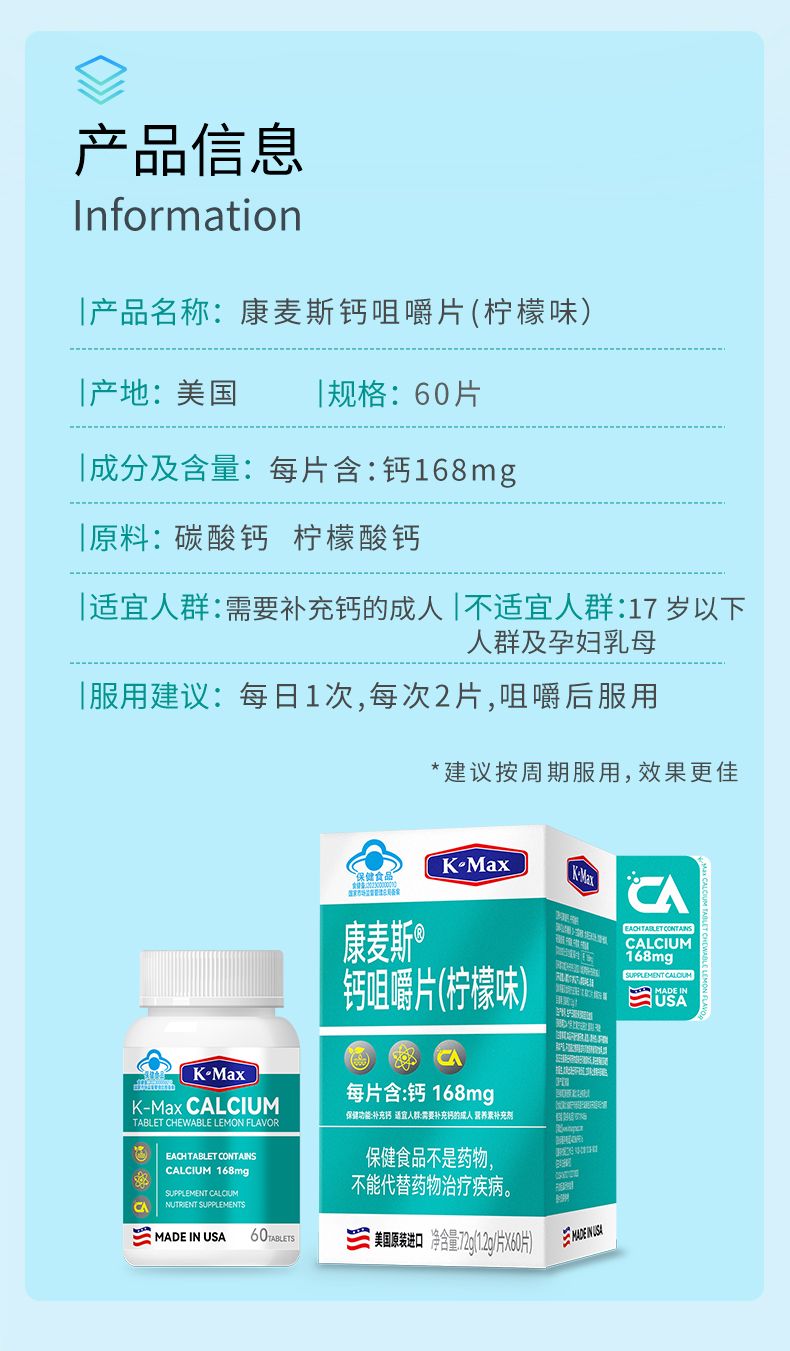 商品名称:康麦斯 钙咀嚼钙片柠檬味 60粒