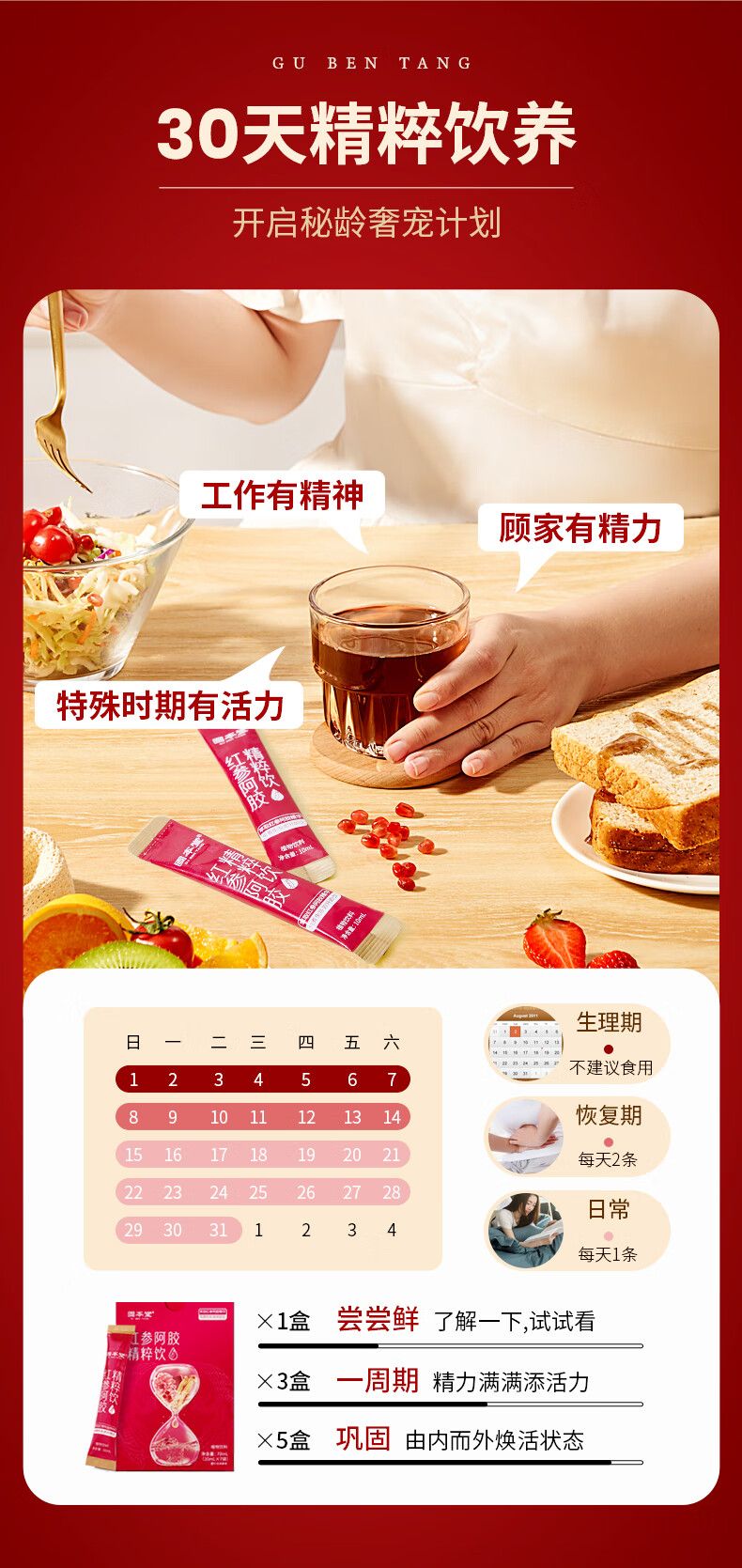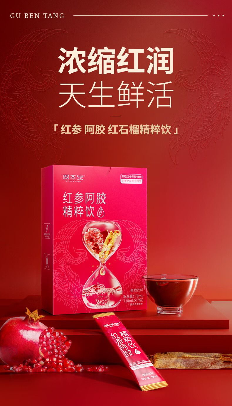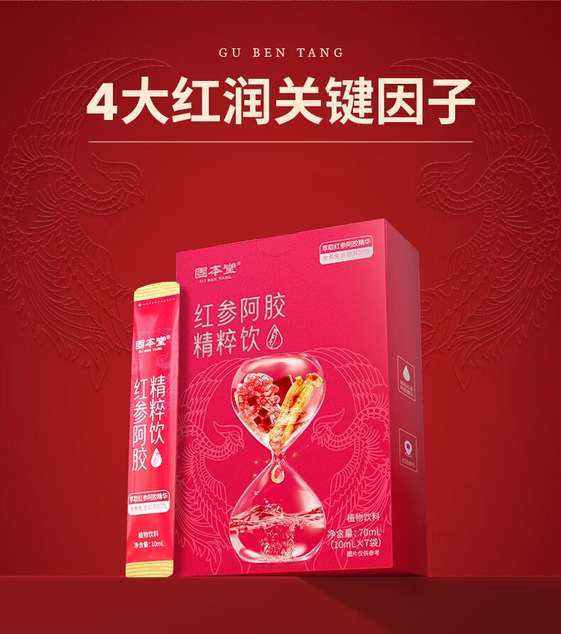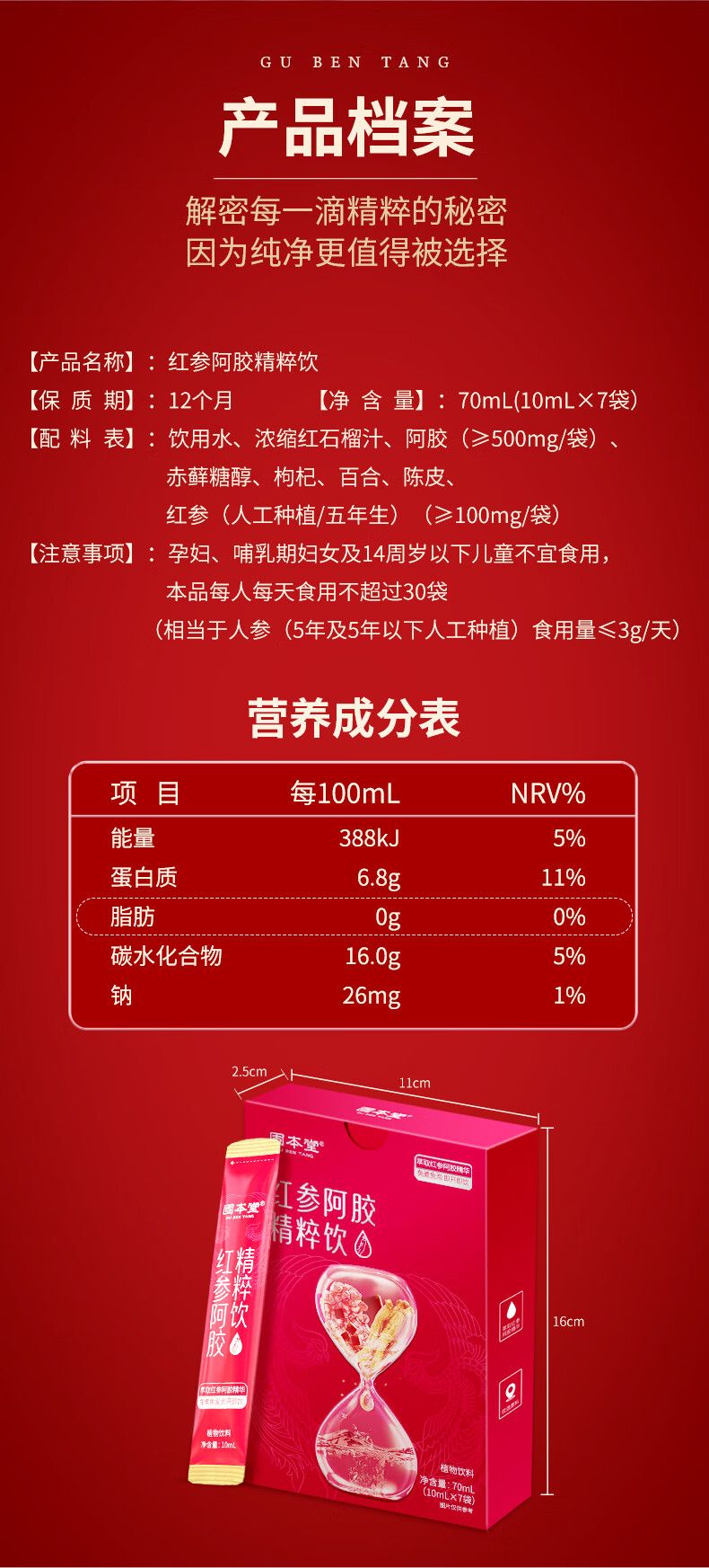 商品名称:固本堂 红参阿胶精粹饮(10毫升*7袋) 补气养血高浓缩红参阿胶石榴液人参礼品美容养颜父亲节礼物送父母长辈见家长