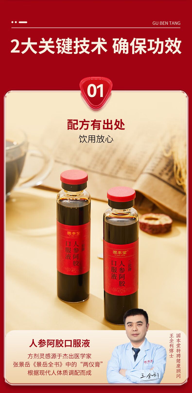 固本堂人参阿胶口服液24支装