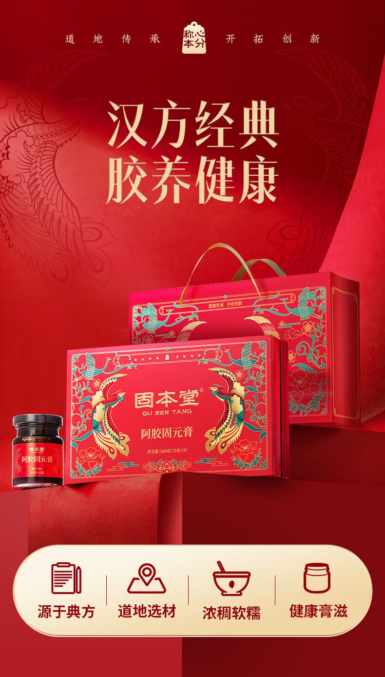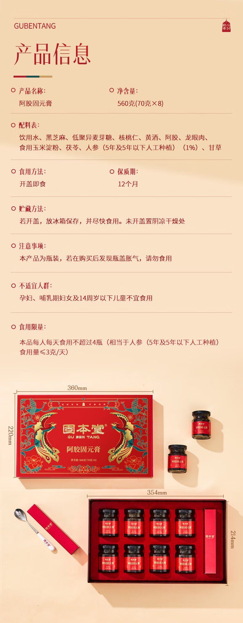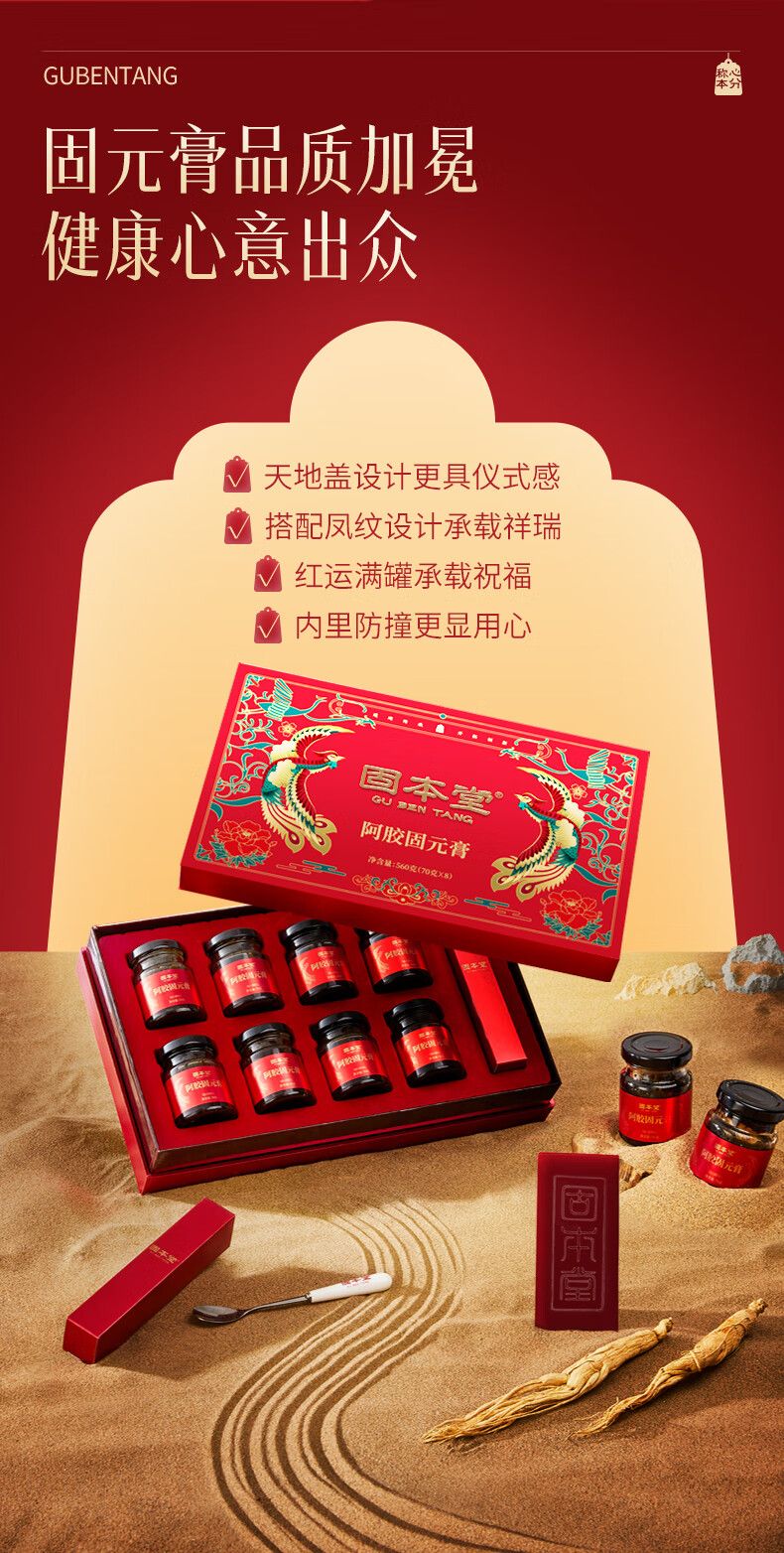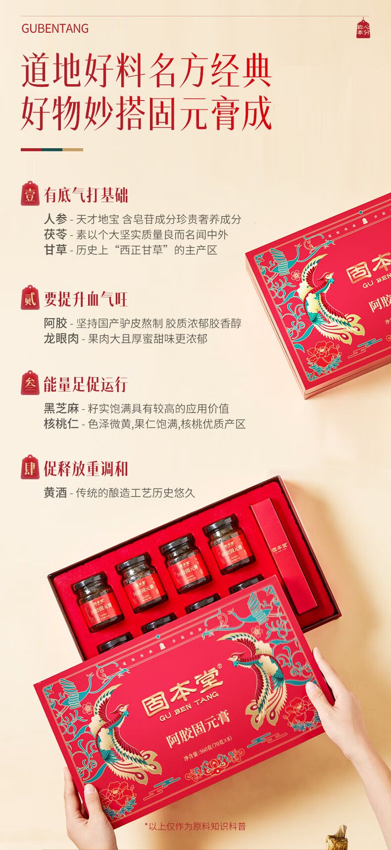 商品名称:固本堂 阿胶固元膏560g(70gx8瓶) 即食固元膏 高端礼品 食品礼盒送长辈 孝敬父母滋补营养品老年人营养品
