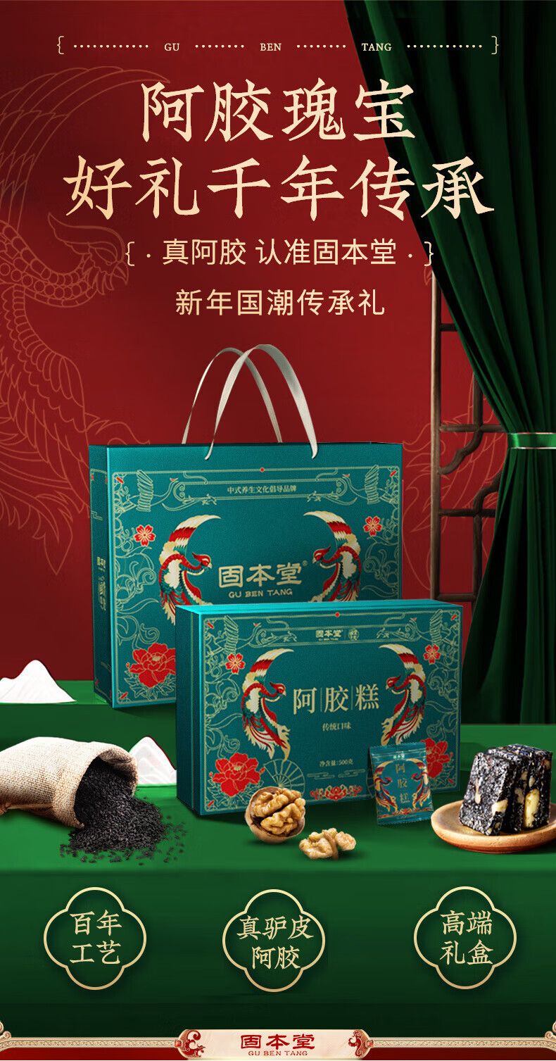 商品名称:固本堂 阿胶糕礼盒500g(100块) 送礼长辈父母家长女滋补品送妈妈 父亲节礼物送丈母娘营养品送实用礼物高端礼盒
