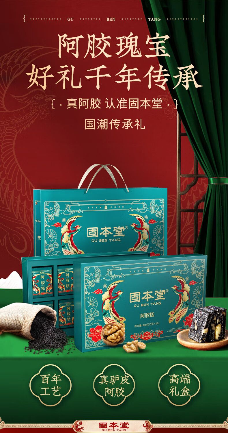 商品名称:固本堂传统口味阿胶糕礼盒300g(60块) 送礼长辈父母家长营养品食品礼盒送妈妈父亲节礼物送父母长辈