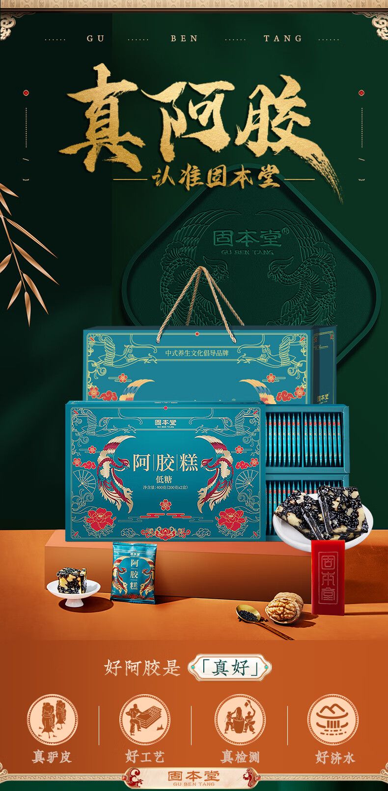商品名称:固本堂低糖阿胶糕400克(80块) 低糖阿胶糕送礼长辈父母家长补品营养品女人父亲节礼物送父母长辈