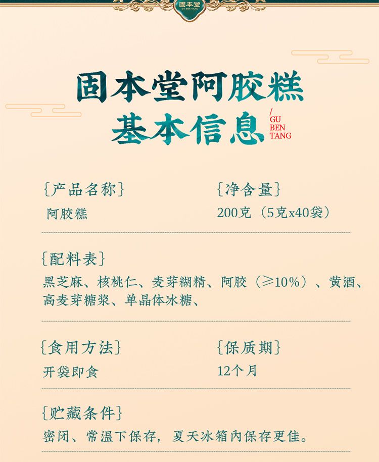 商品名称:固本堂阿胶糕传统口味200克(40块) 送礼长辈父母家长年货礼盒食品礼盒送长辈高端送父母父亲节礼物