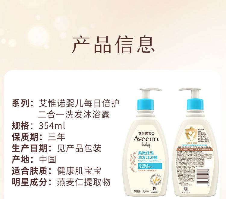 商品名称:Aveeno艾惟诺 婴儿每日倍护二合一洗发沐浴露
