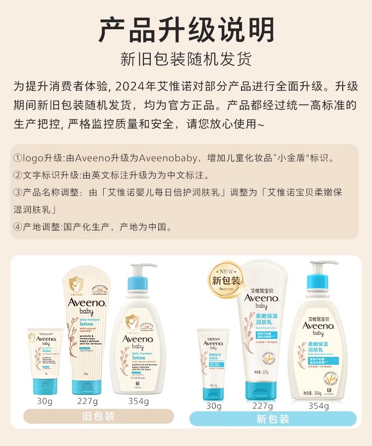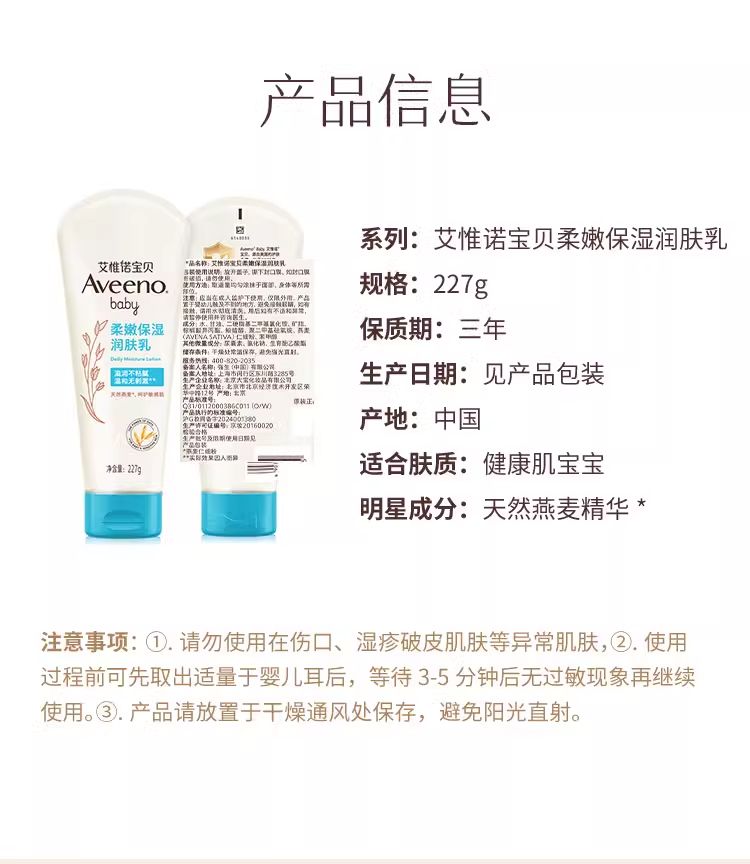 商品名称:Aveeno艾惟诺 婴儿每日倍护润肤乳(无香型)227g/支