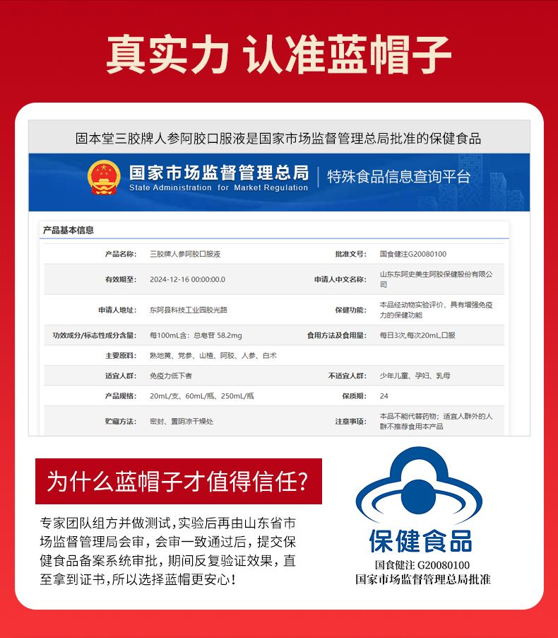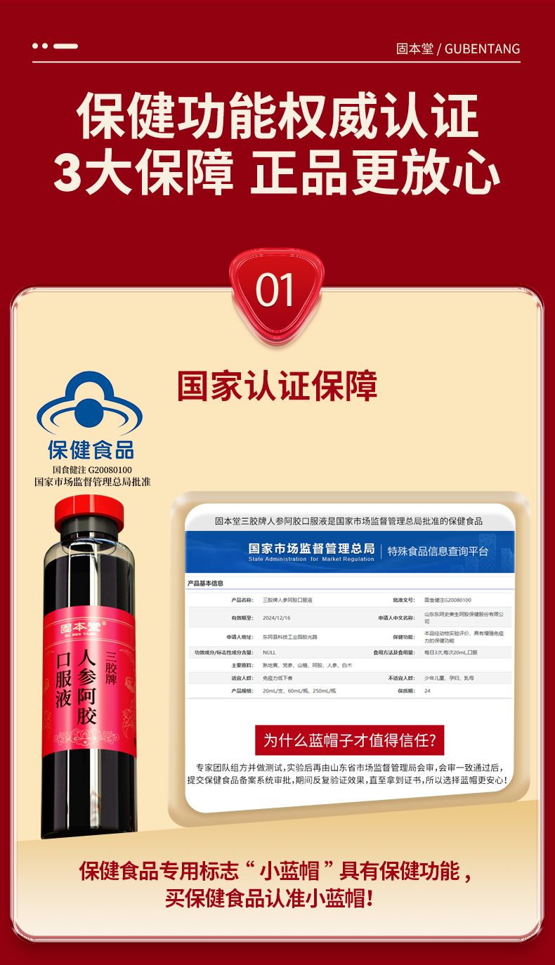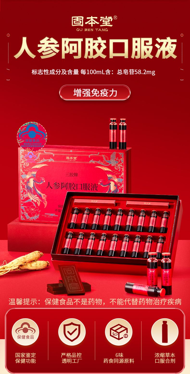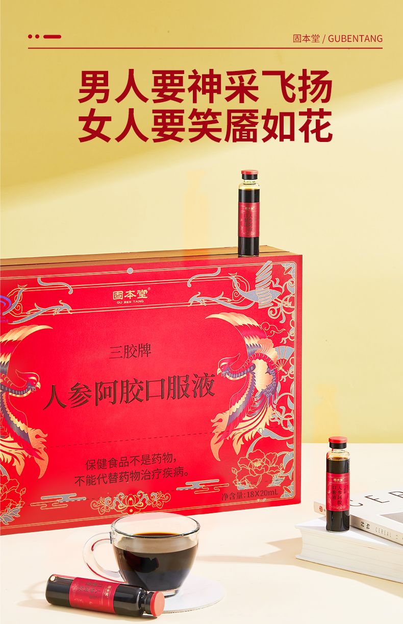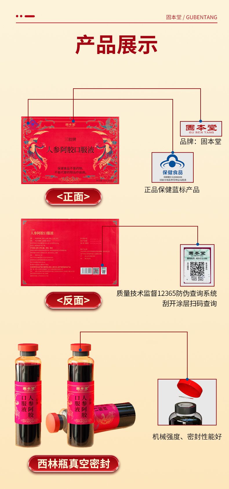 商品名称:固本堂人参阿胶口服液 阿胶浆补品品 固本堂人参阿胶口服液20ml*18支