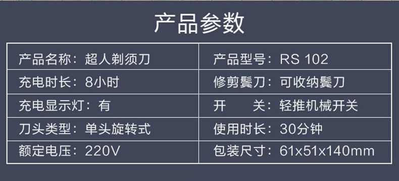 商品名称:超人单刀头电动剃须刀电动刮胡刀充电式男剃须刀圆头胡须刀须刨