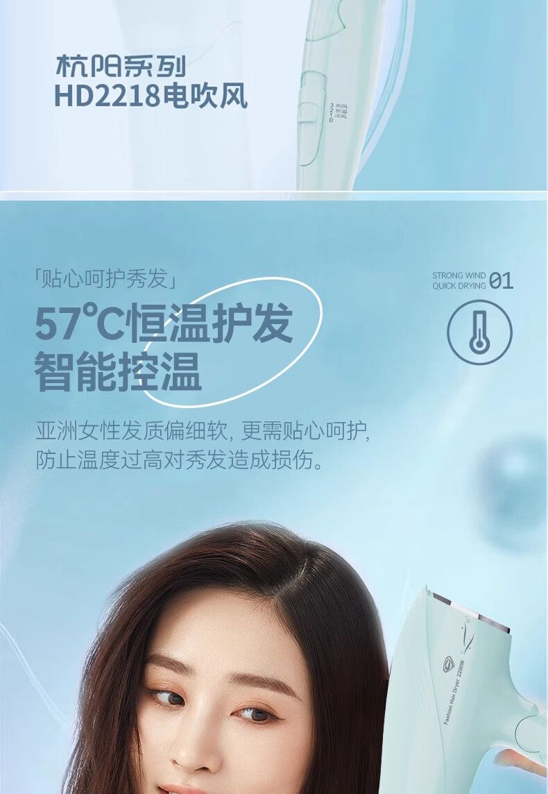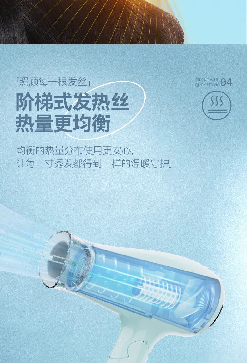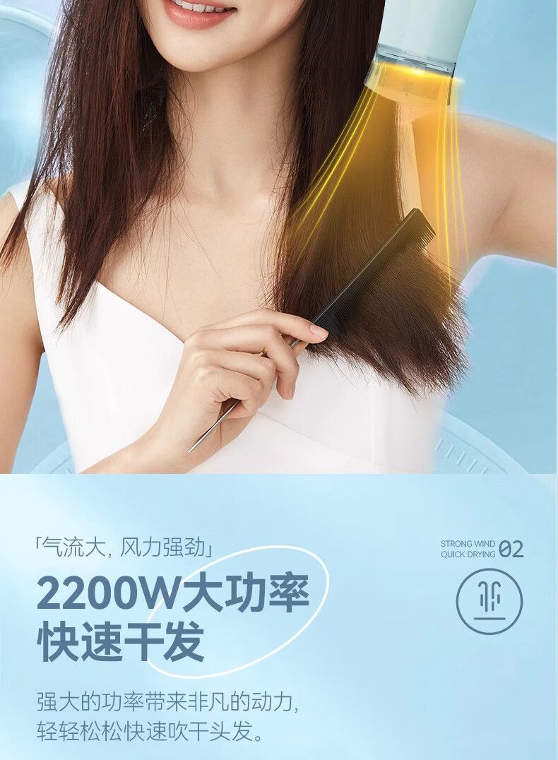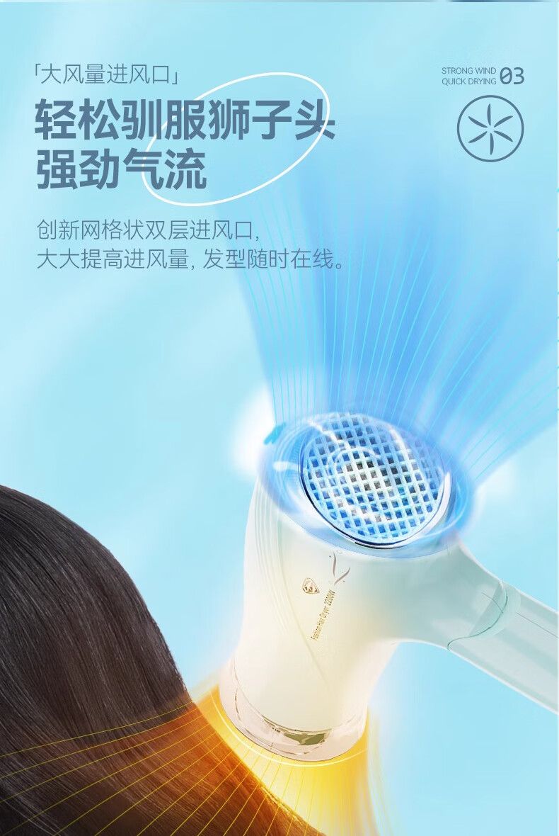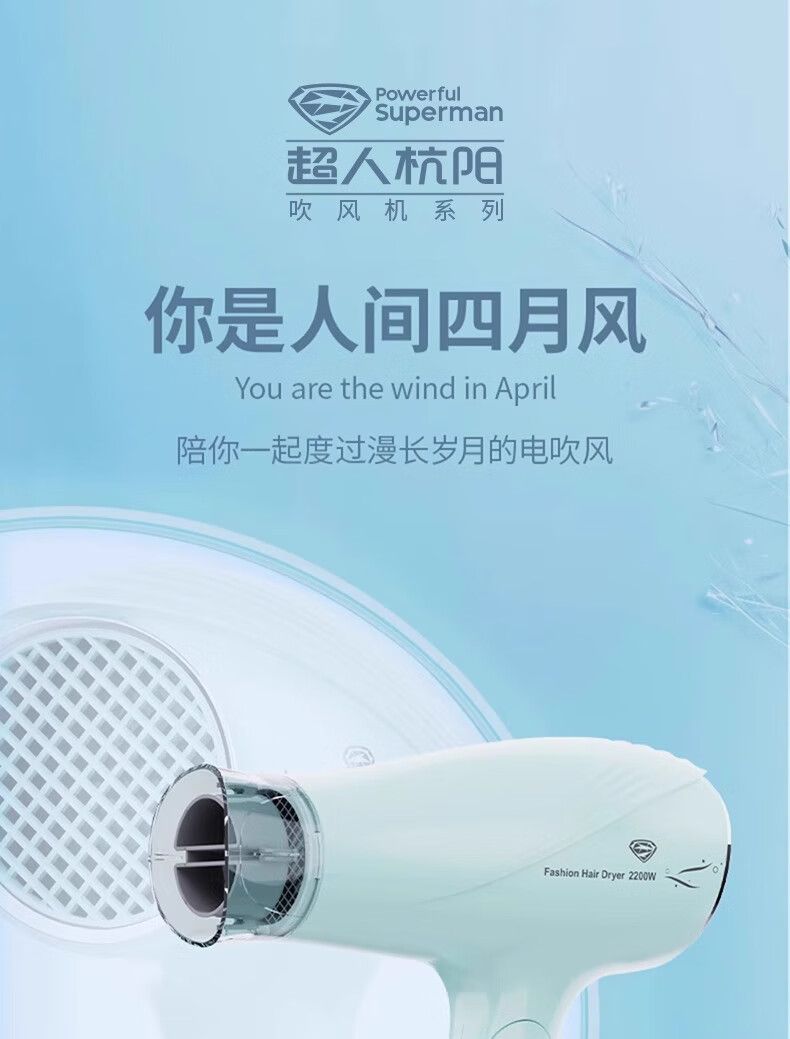 超人(SID)家用电吹风机水润负离子大风量速干便携简约吹风筒宿舍学生旅行用电吹风2200W折叠手柄HD2218