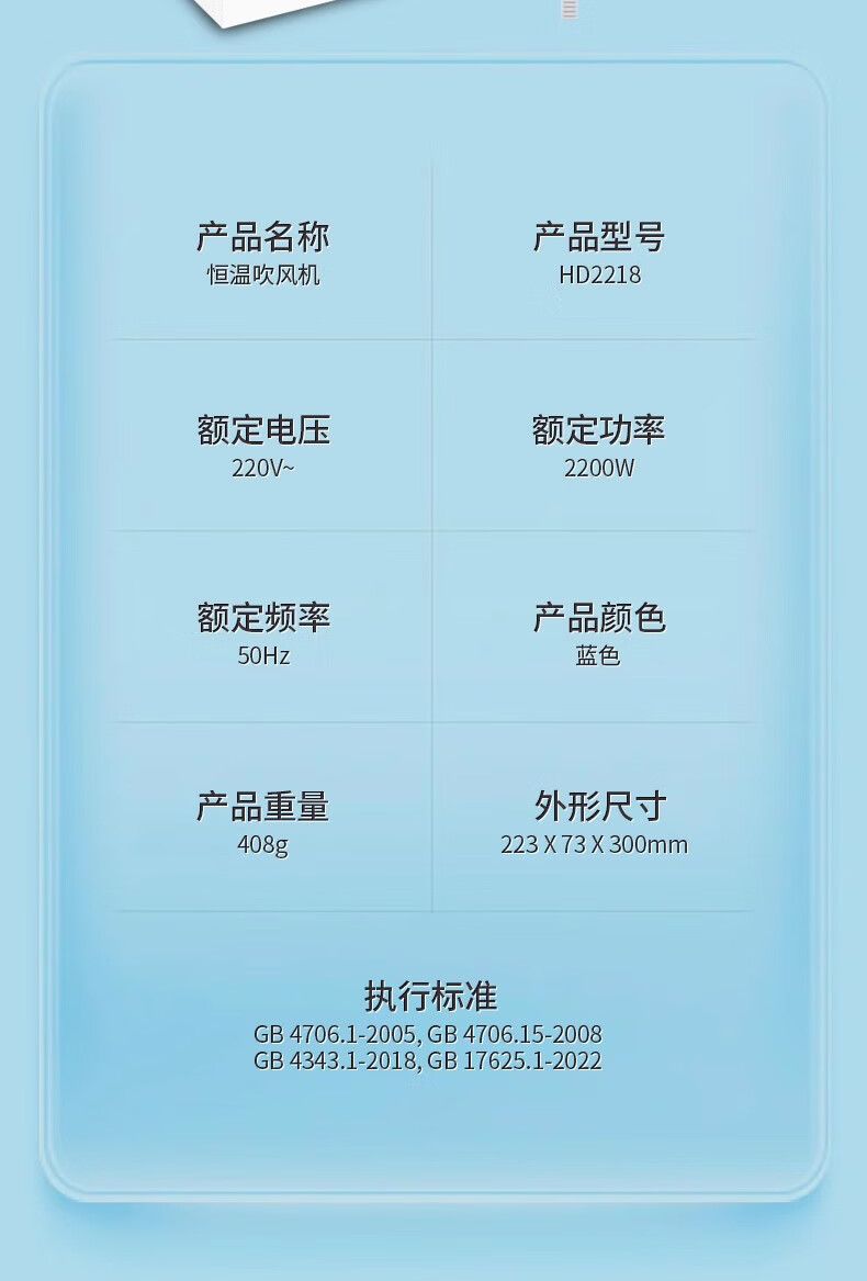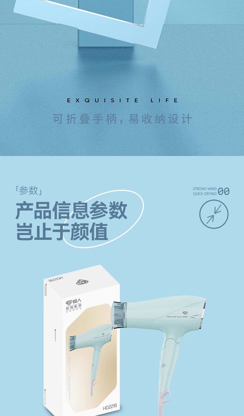 商品名称:超人(SID)家用电吹风机水润负离子大风量速干便携简约吹风筒宿舍学生旅行用电吹风2200W折叠手柄HD2218