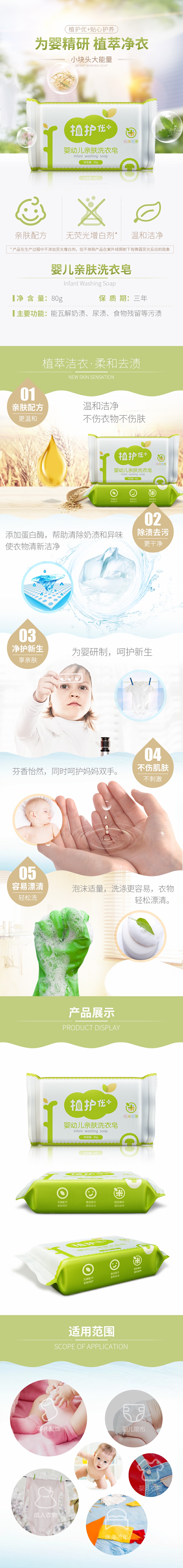 商品名称:植护 婴幼儿洗衣皂80g*5块