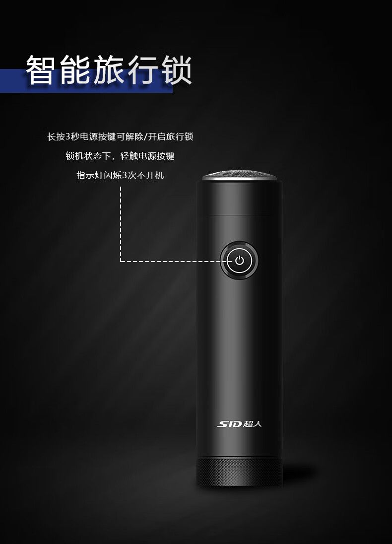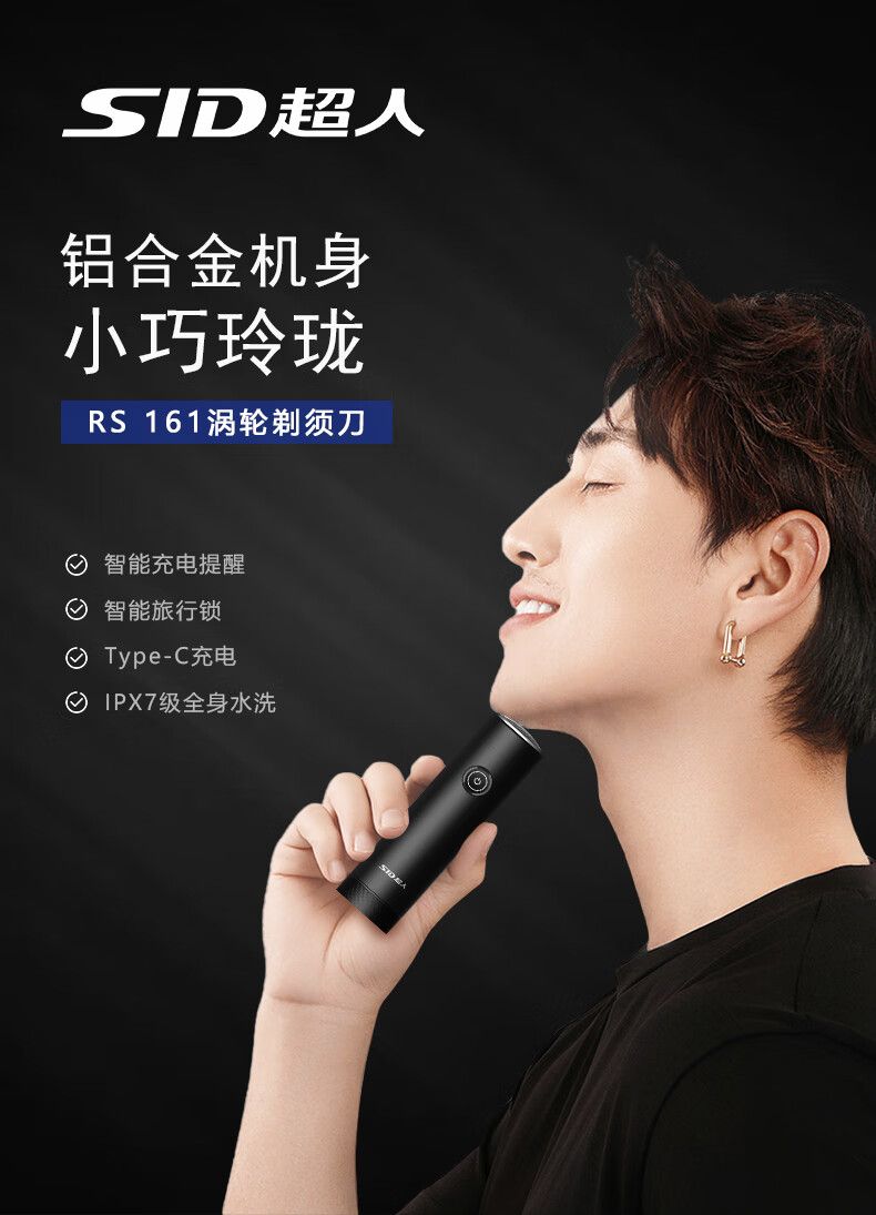 超人(SID) 电动剃须刀单头全身水洗迷你旅行出差便携式车载大功率1小时快充生日礼物送男生 RS161