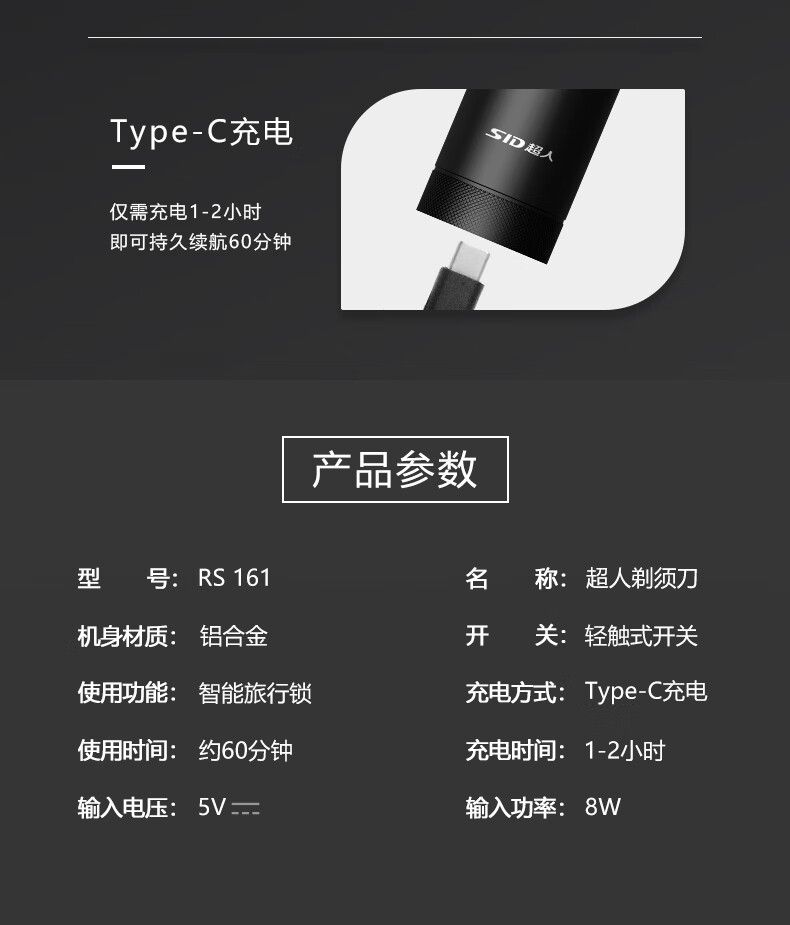 商品名称:超人(SID) 电动剃须刀单头全身水洗迷你旅行出差便携式车载大功率1小时快充生日礼物送男生 RS161