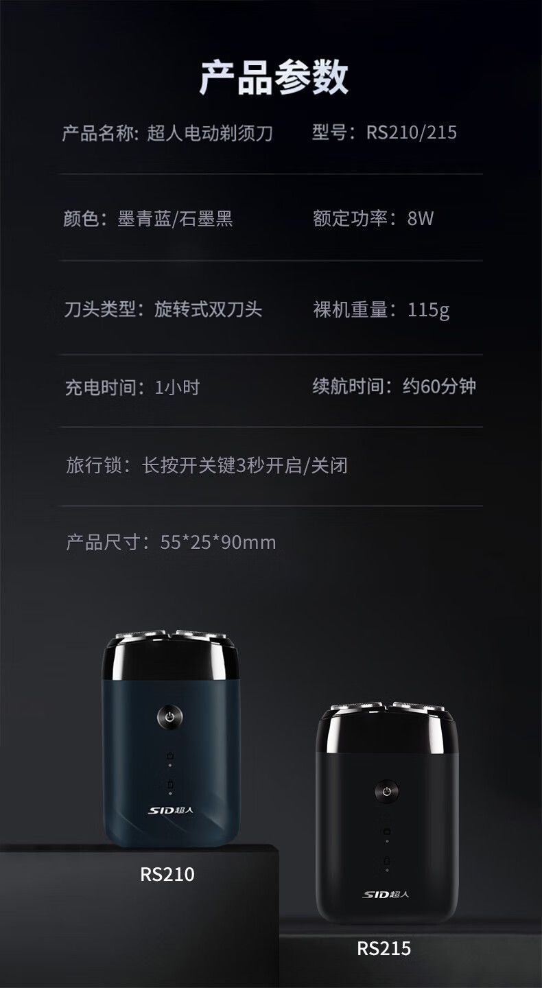 商品名称:超人(SID) 电动剃须刀双头全身水洗便携式小巧迷你出差旅行车载男士生日礼物