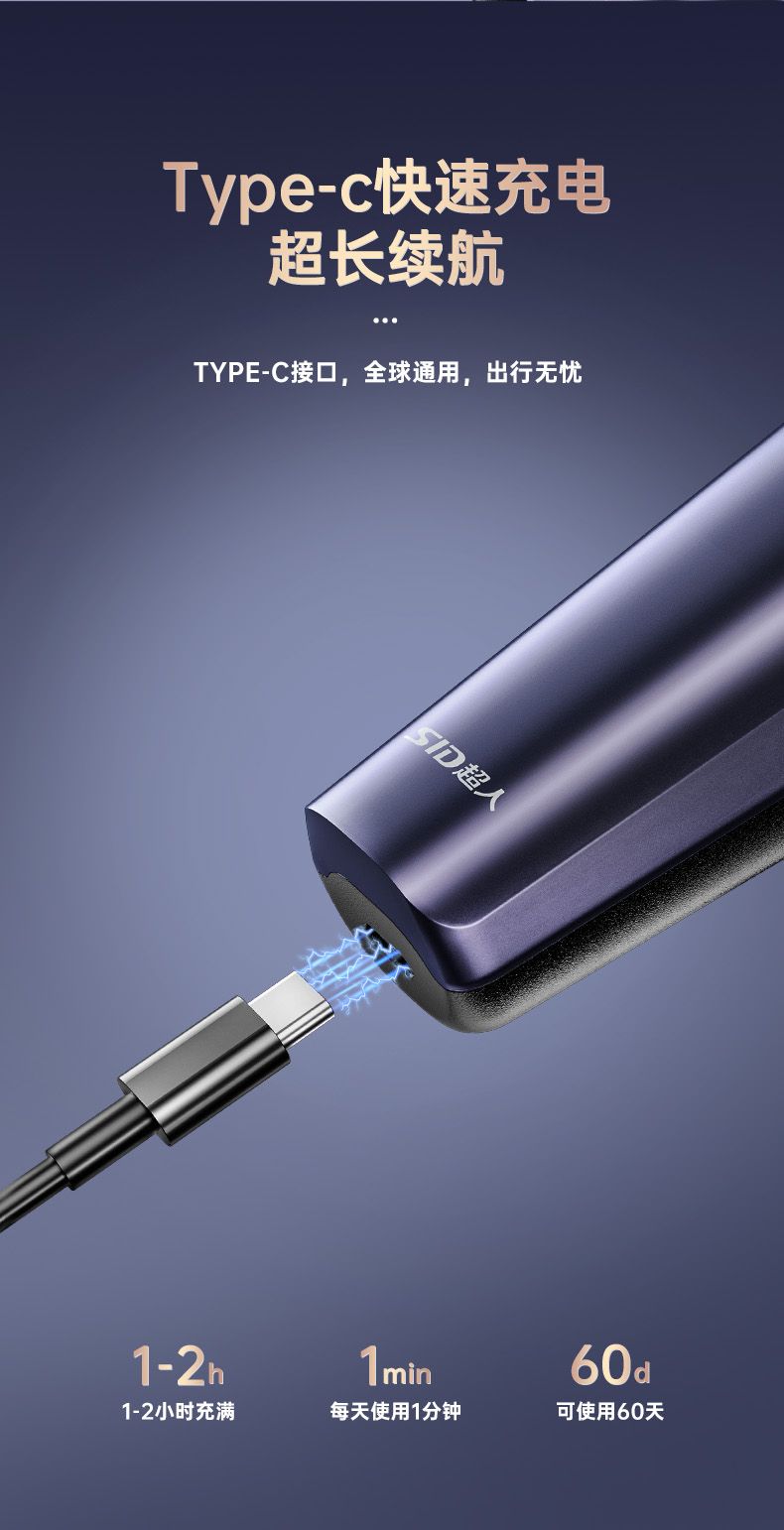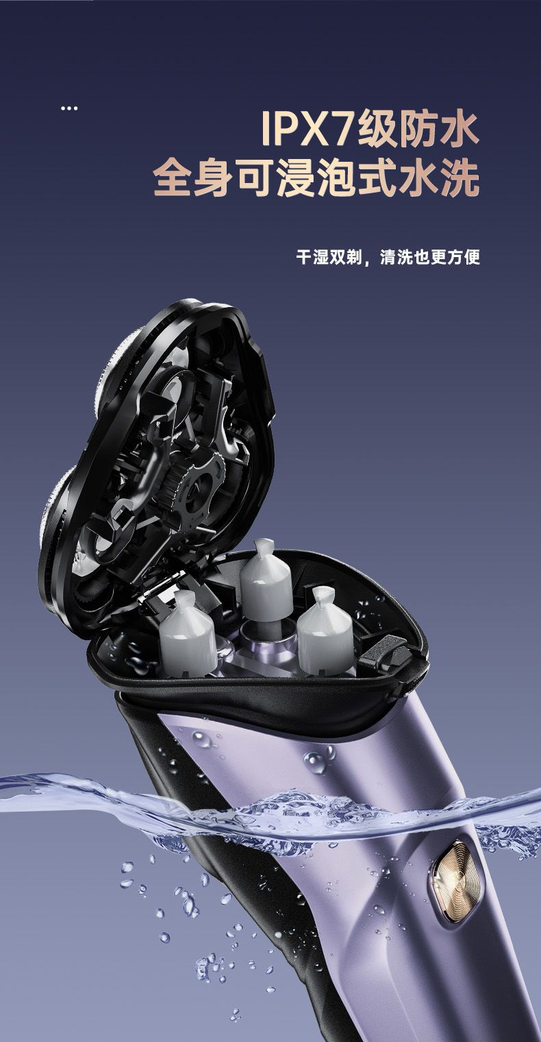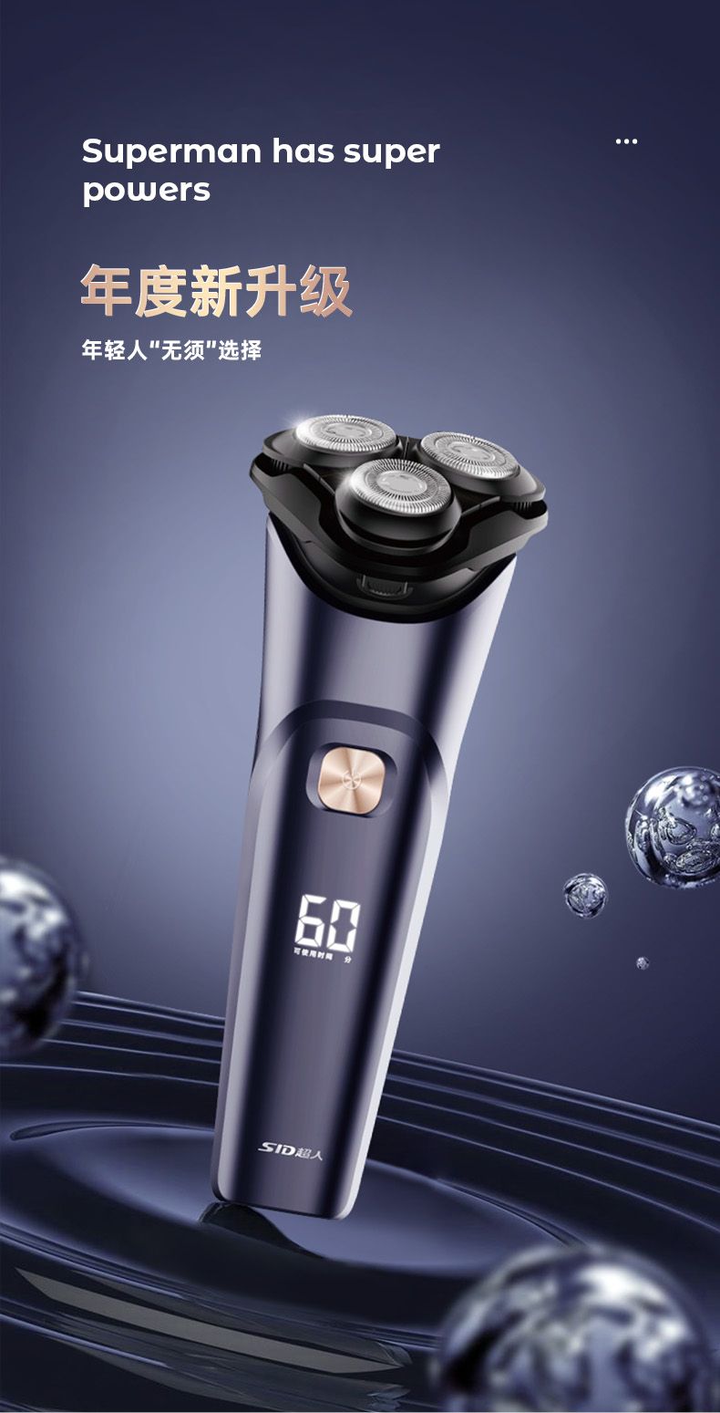 超人电动剃须刀刮胡刀全身水洗大功率浮动三刀头智能电量显示1小时快充type-c RS311