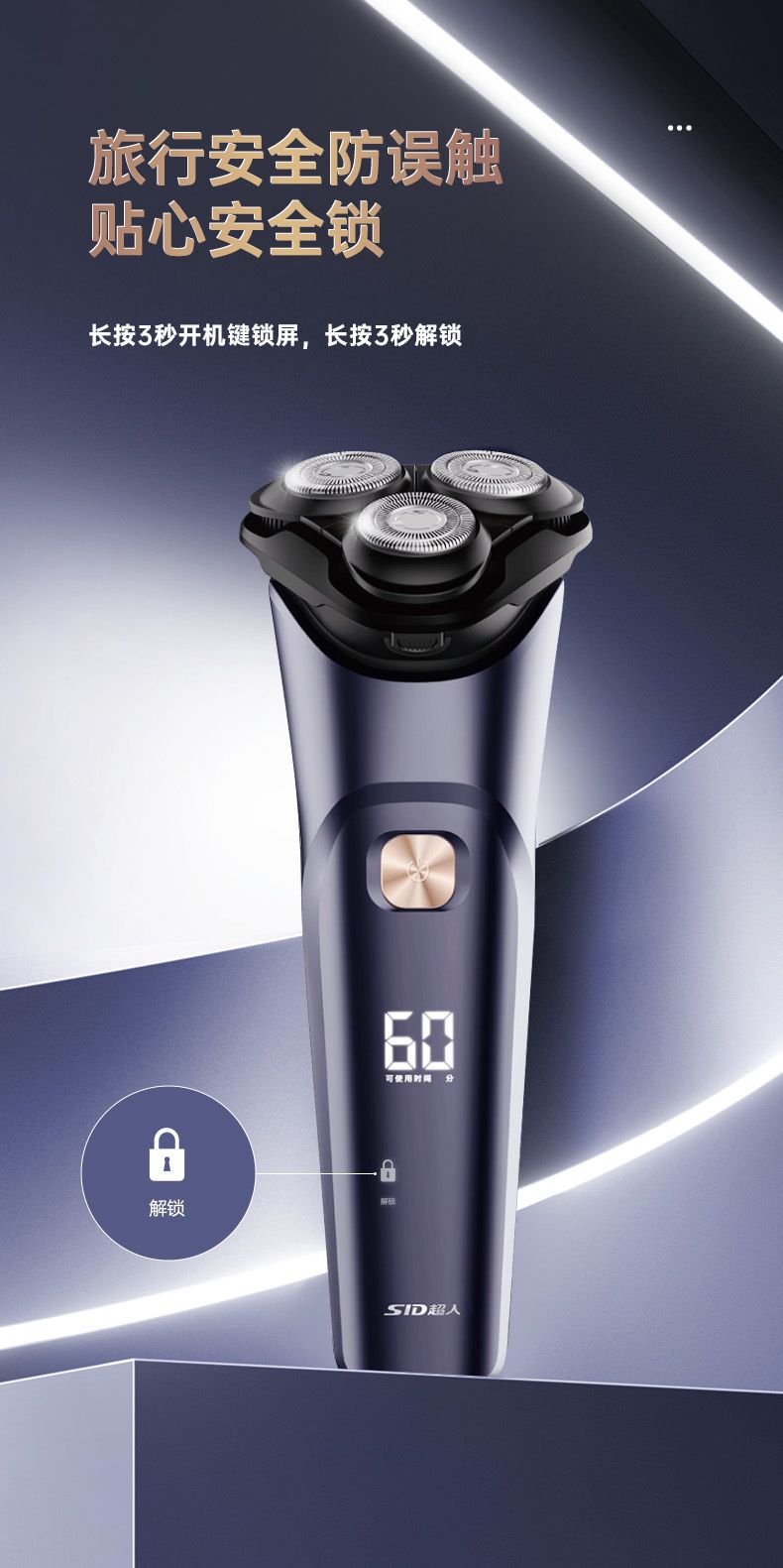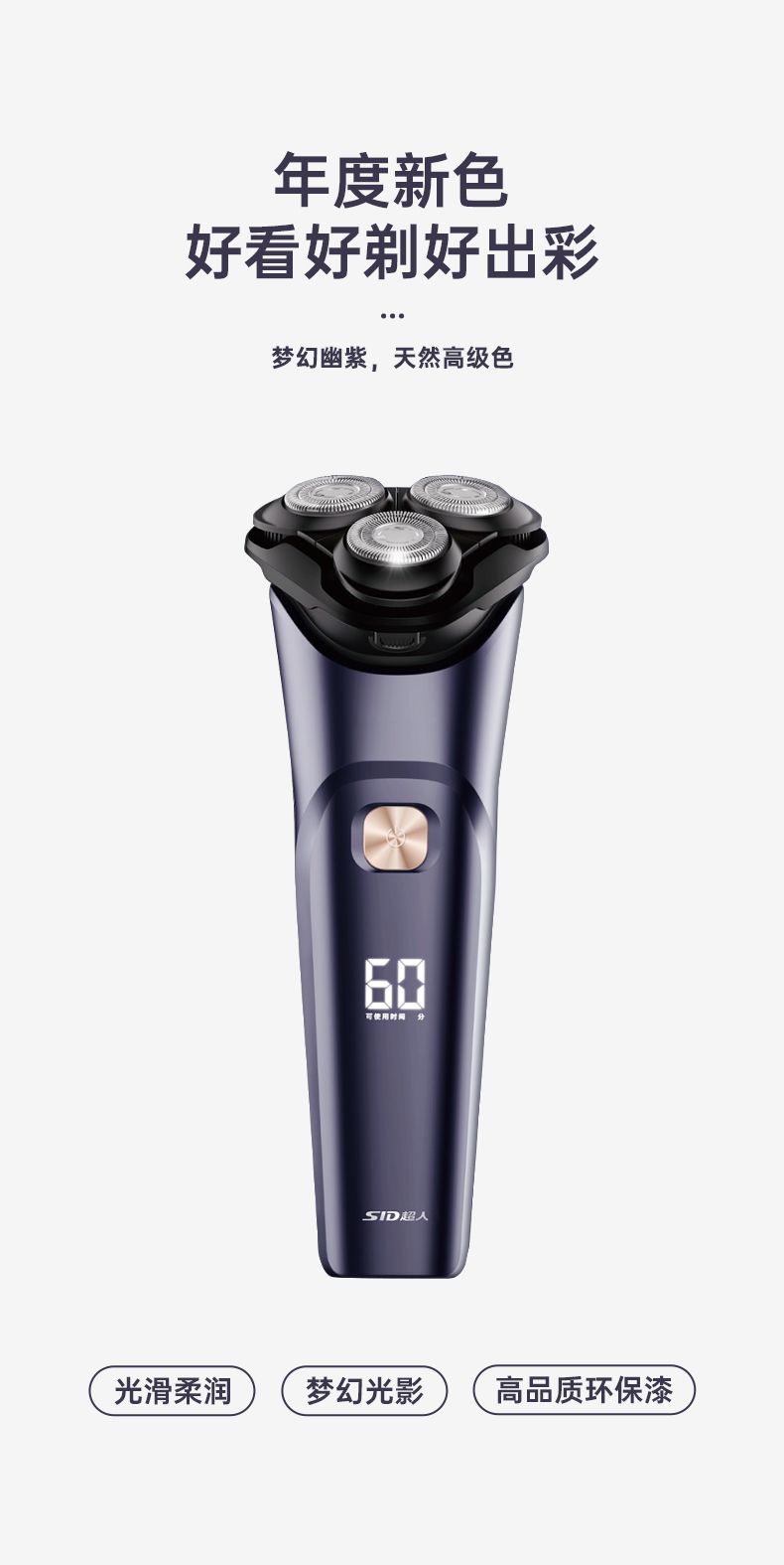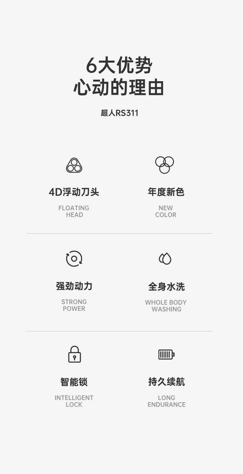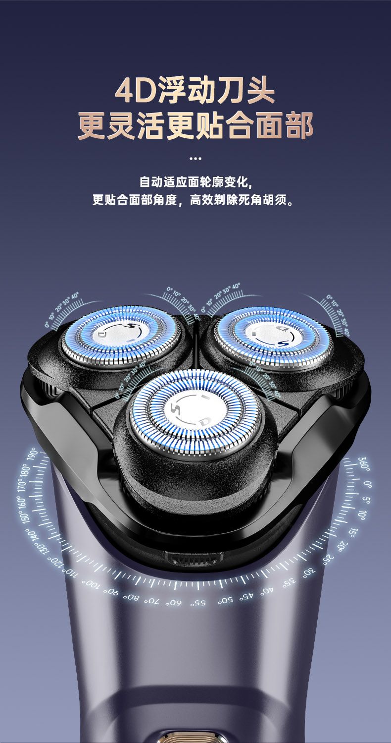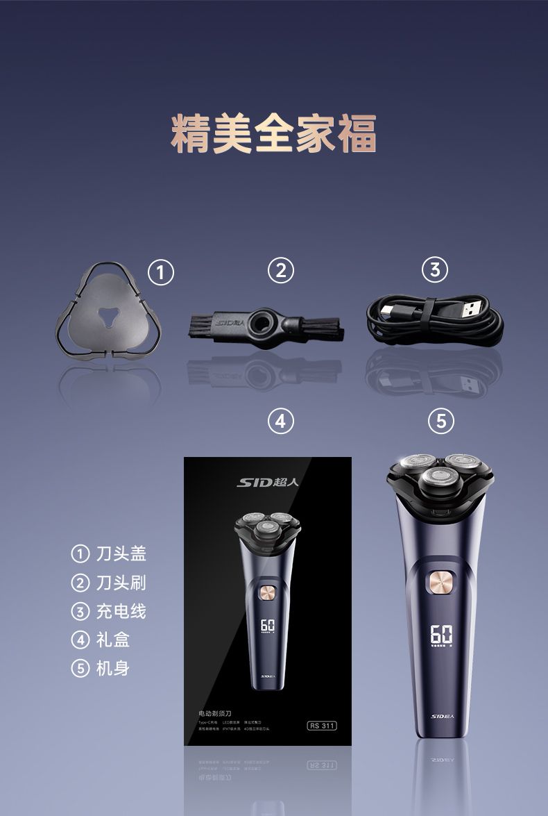 商品名称:超人电动剃须刀刮胡刀全身水洗大功率浮动三刀头智能电量显示1小时快充type-c RS311