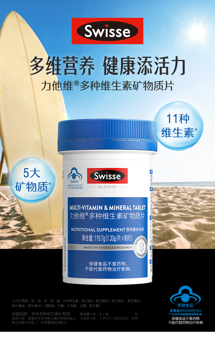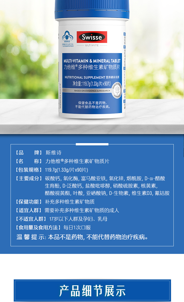 商品名称:Swisse/斯维诗 力他维男士复合维生素矿物质片90片