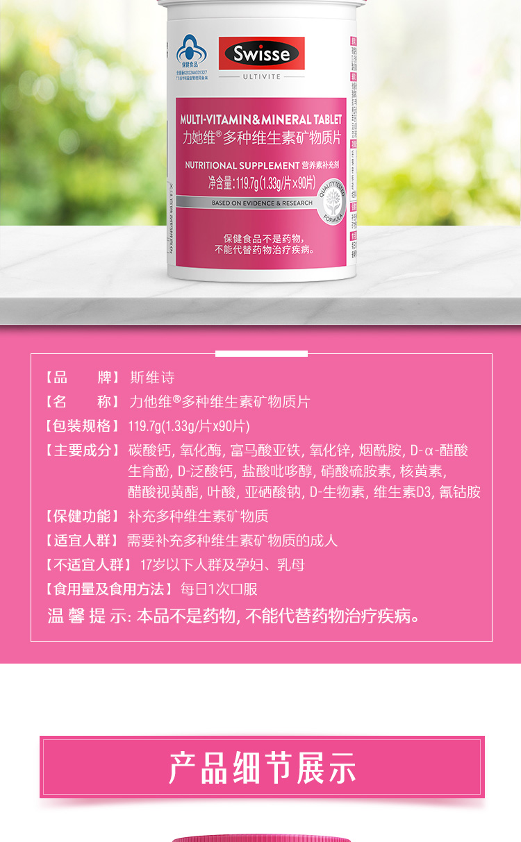 商品名称:Swisse/斯维诗 力她维女士复合维生素矿物质片90片