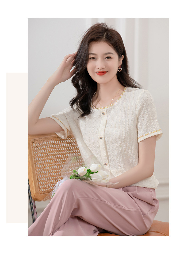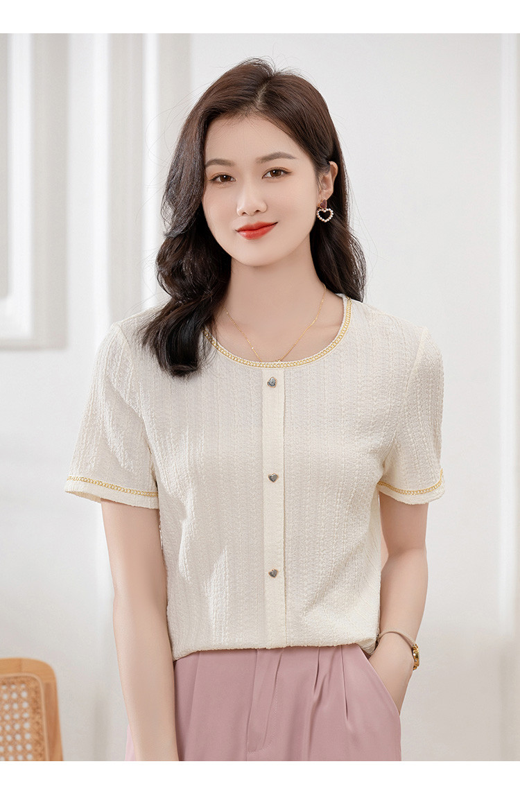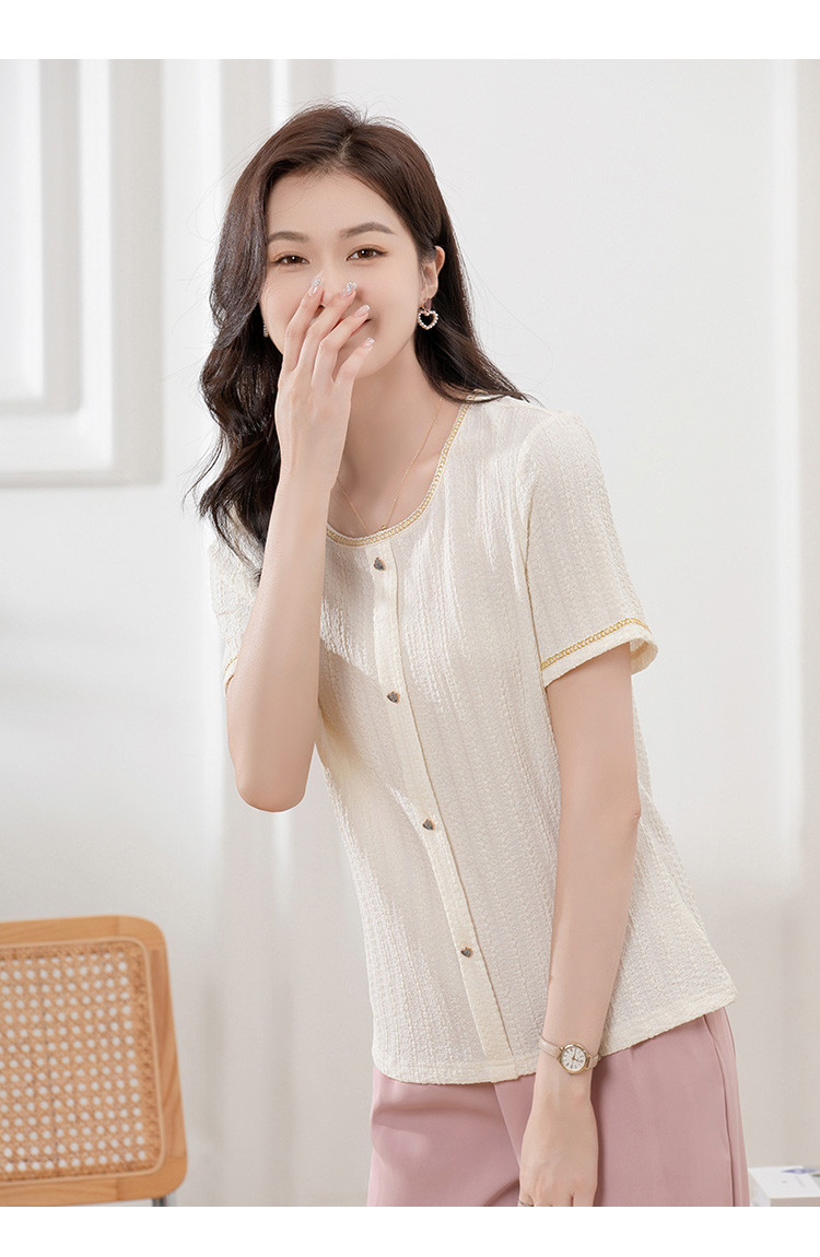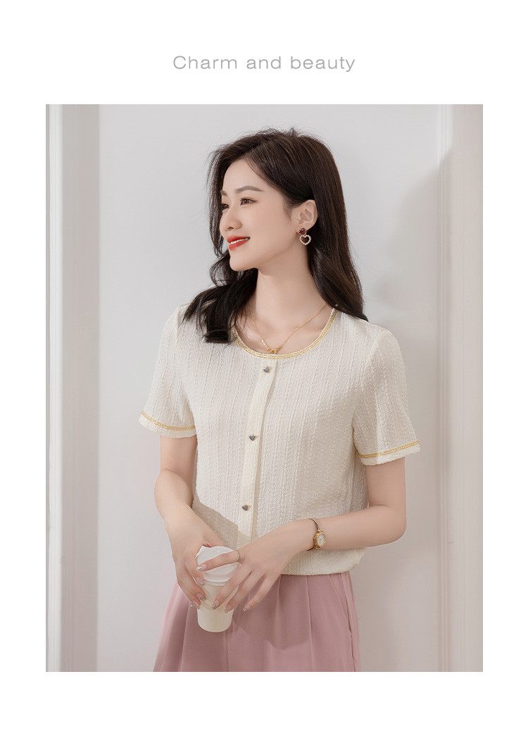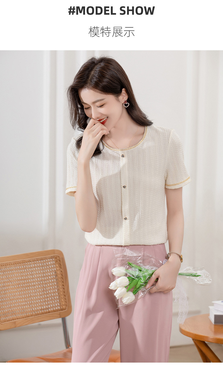 商品名称:女装夏季圆领修身设计感小众薄款锁骨短款上衣 070616