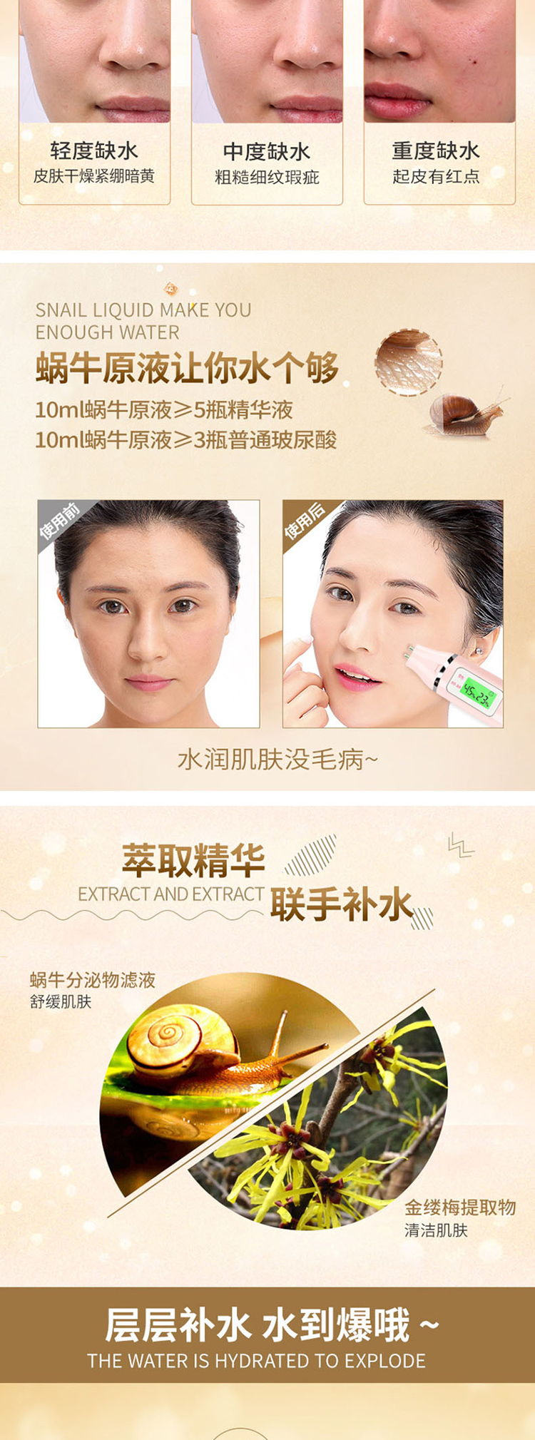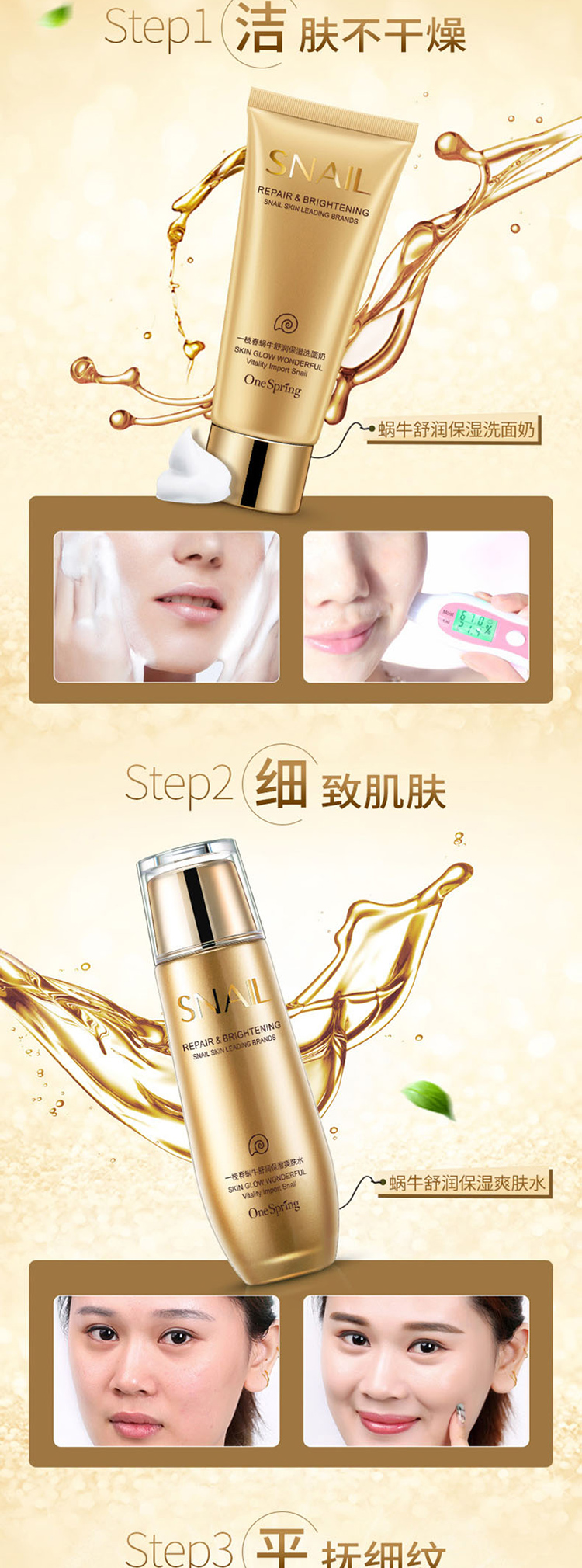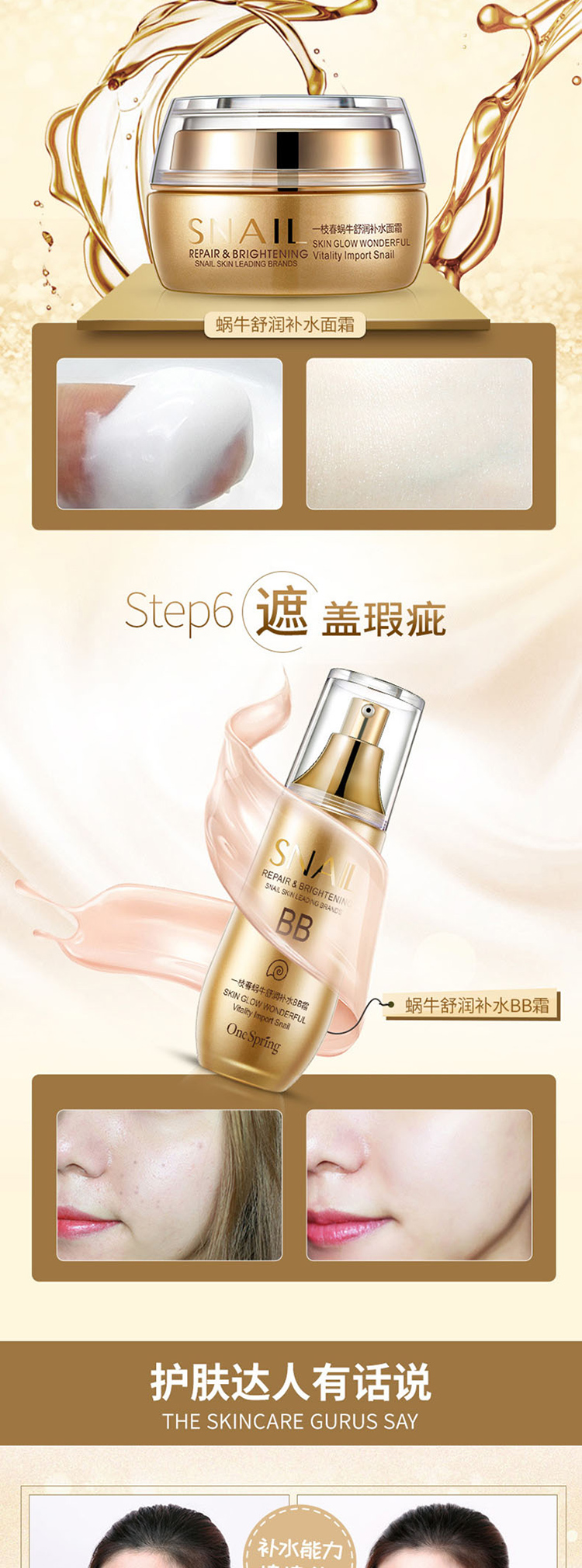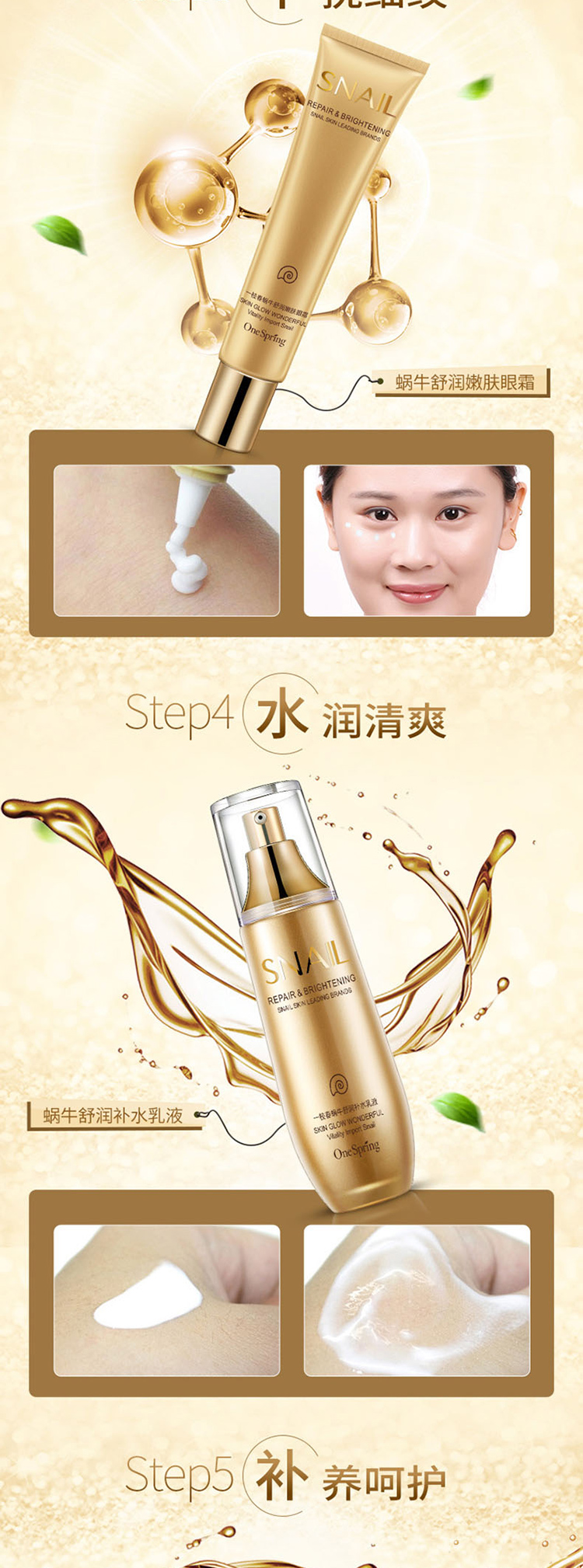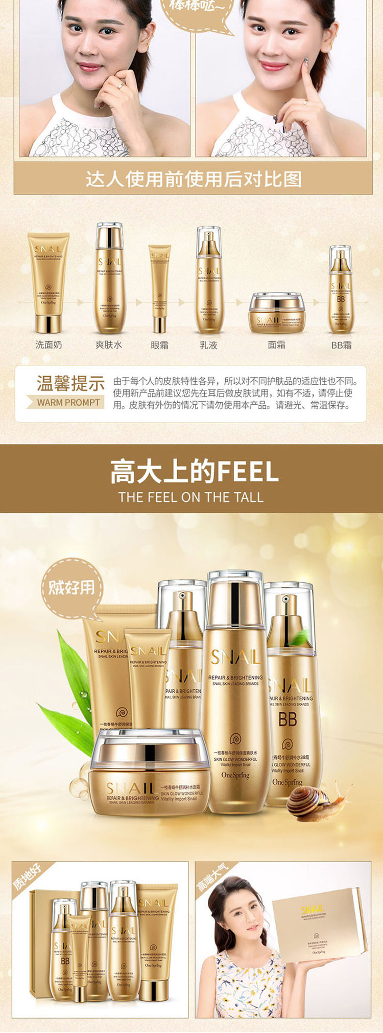 商品名称:一枝春 蜗牛舒润保湿套装(洗面奶+爽肤水+乳液+面霜+眼霜+BB霜)