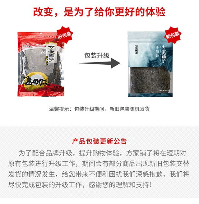 商品名称:方家铺子 干海带220g/*2袋装