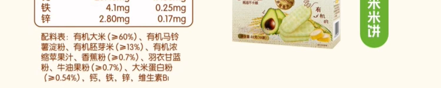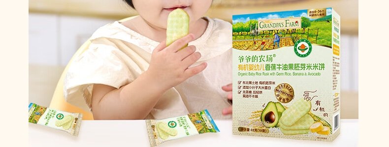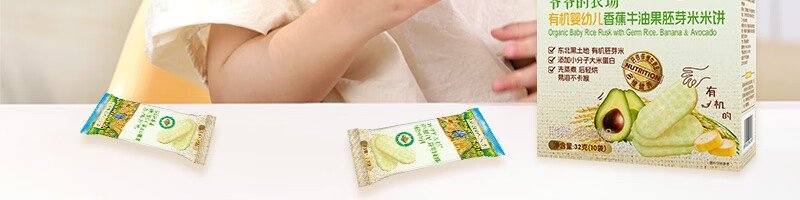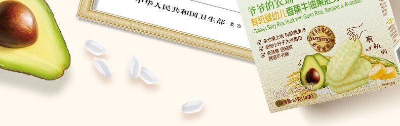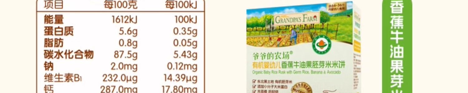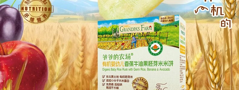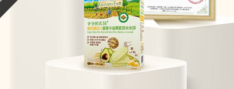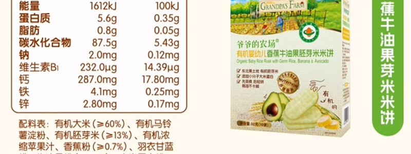 商品名称:爷爷的农场 有机婴幼儿香蕉牛油果胚芽米米饼 32g