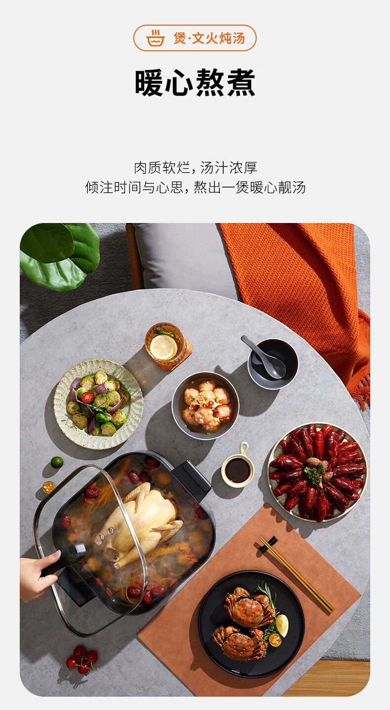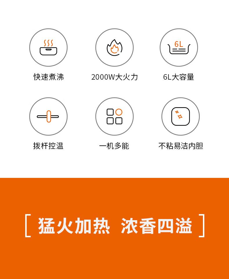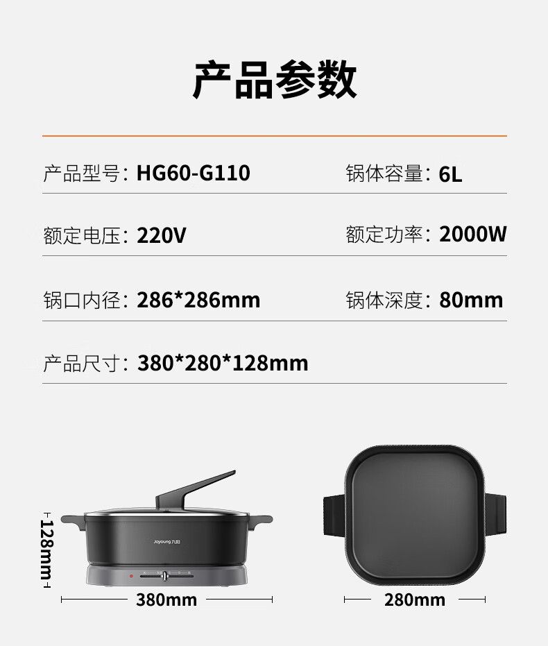 商品名称:九阳 电火锅HG60-G110 电煮锅 多功能料理锅 不粘涮烤锅 电炒锅 6L大容量