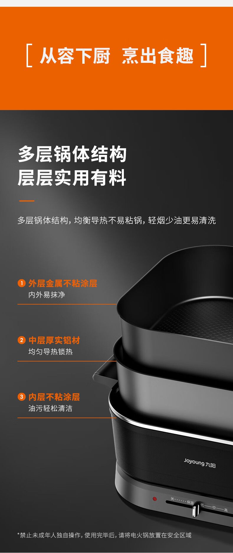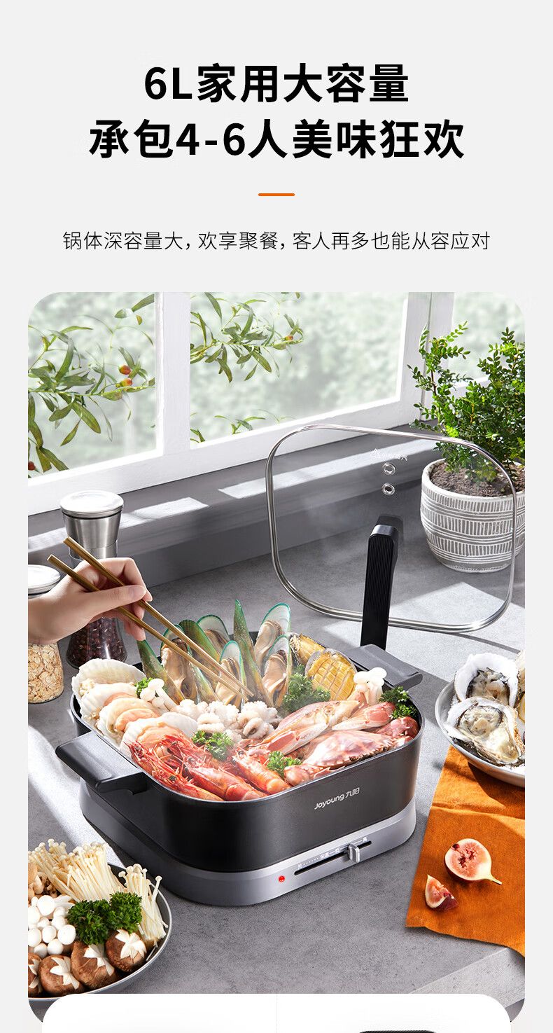 九阳 电火锅HG60-G110 电煮锅 多功能料理锅 不粘涮烤锅 电炒锅 6L大容量