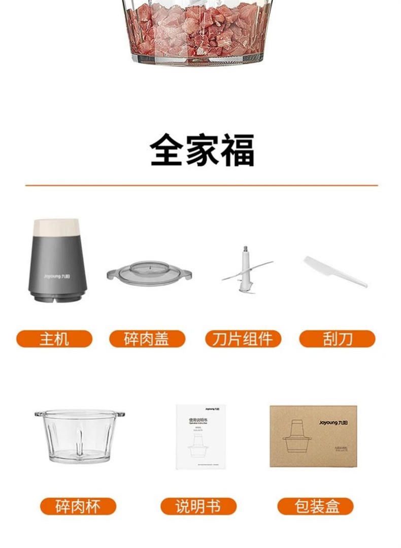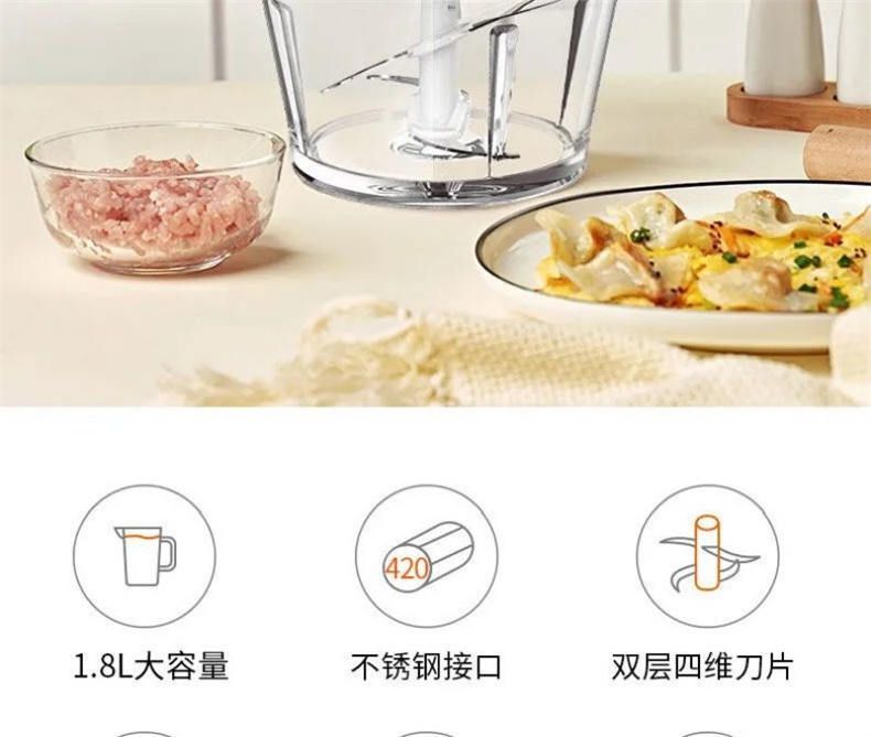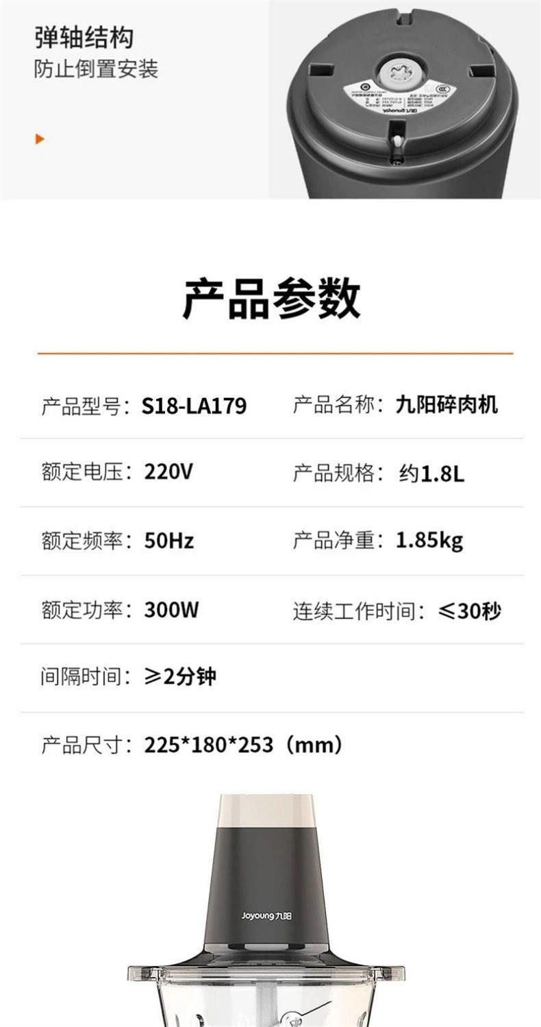 商品名称:九阳绞肉机S18-LA179 家用1.8L大容量双刀电动多功能料理机搅拌婴儿辅食机切菜绞馅