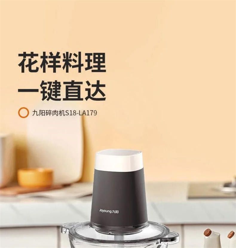 九阳绞肉机S18-LA179 家用1.8L大容量双刀电动多功能料理机搅拌婴儿辅食机切菜绞馅