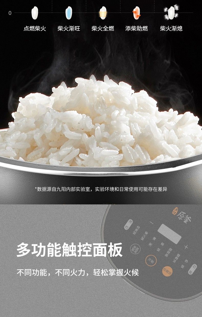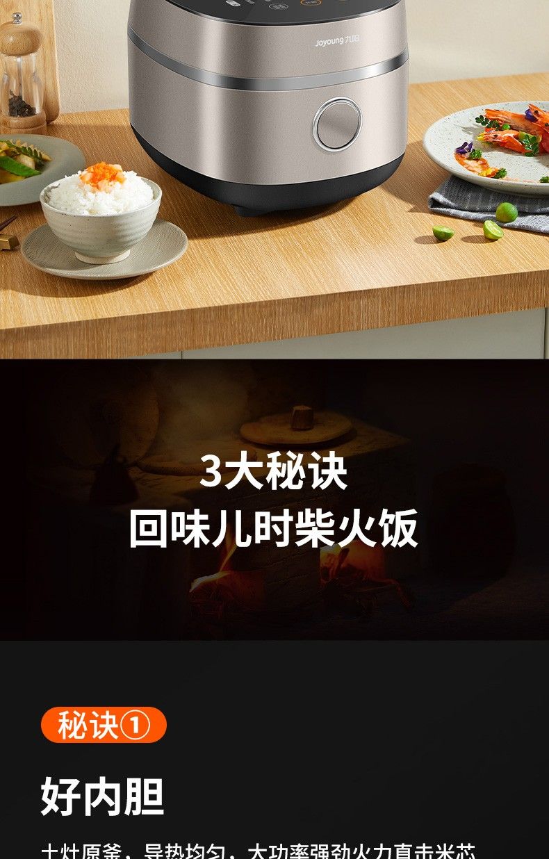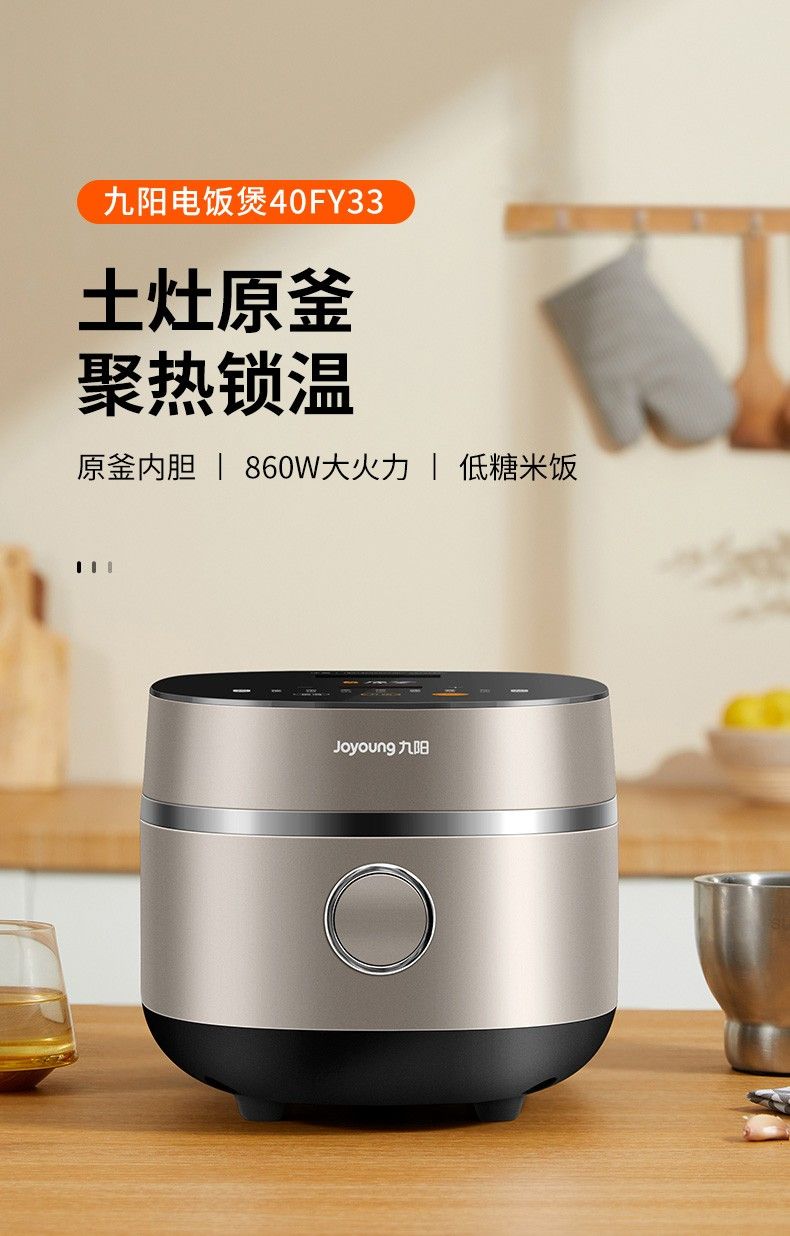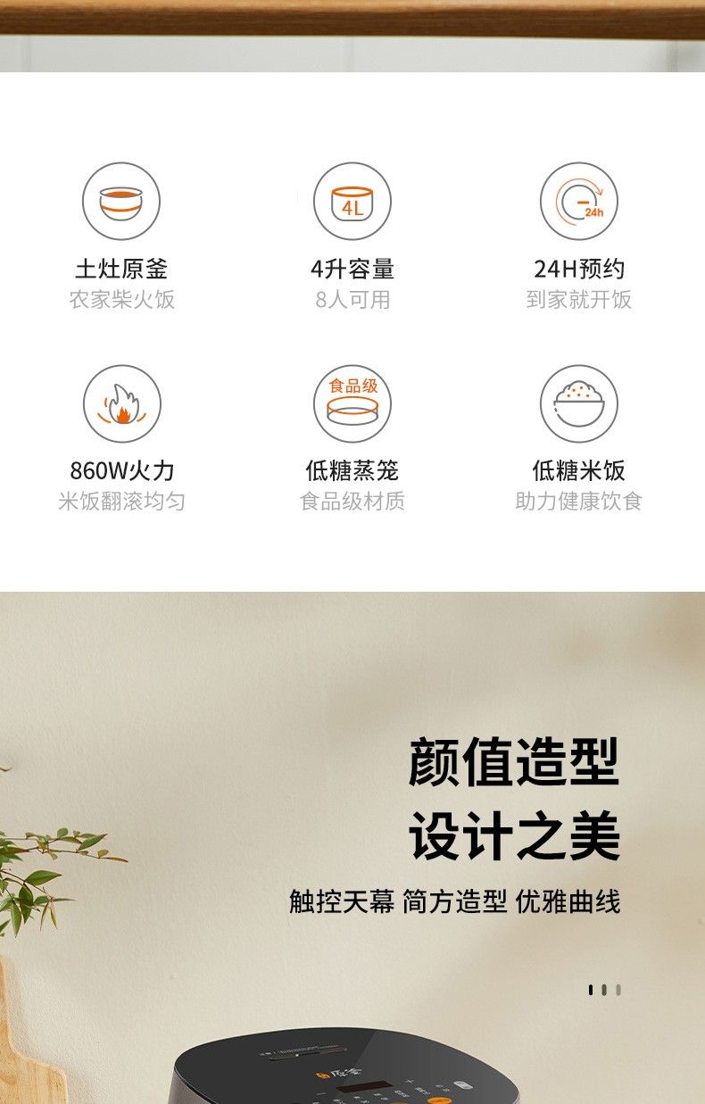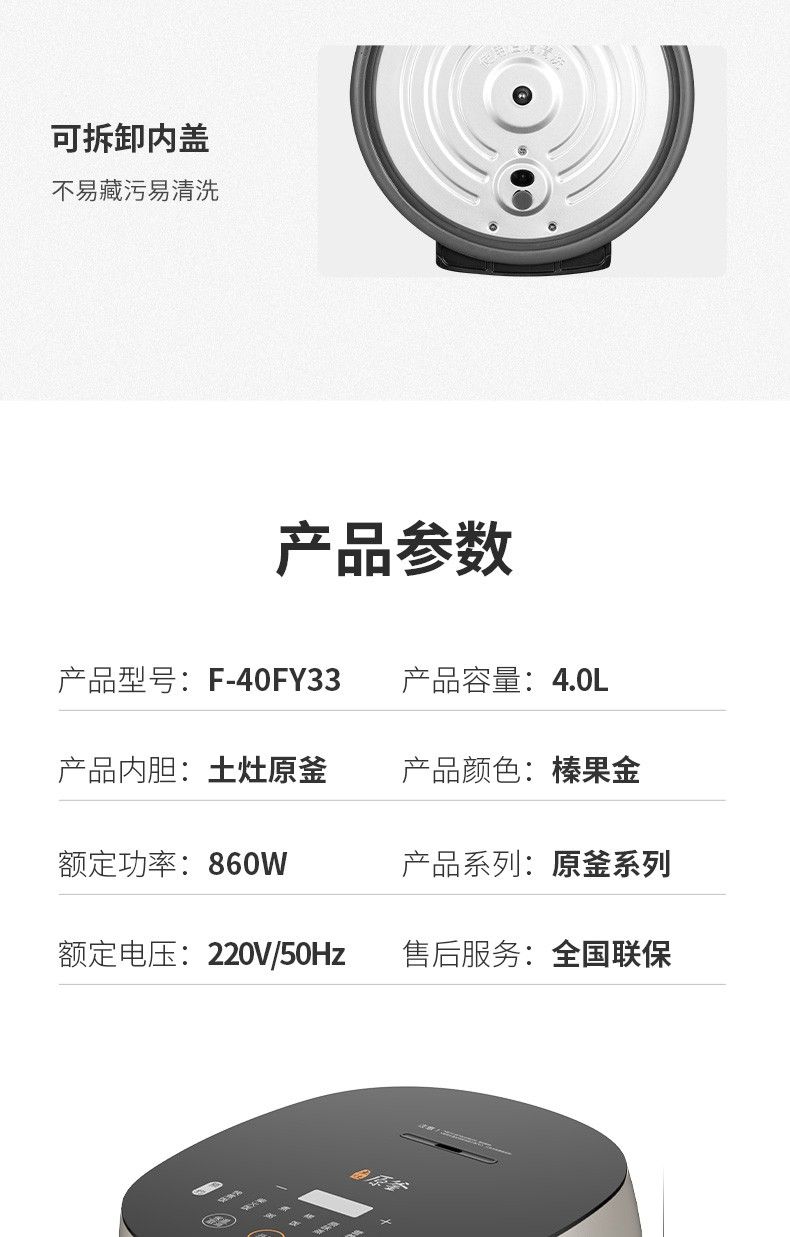 商品名称:九阳低糖电饭煲F-40FY33 米汤分离4升家用智能预约土灶原釜电饭锅 24小时预约
