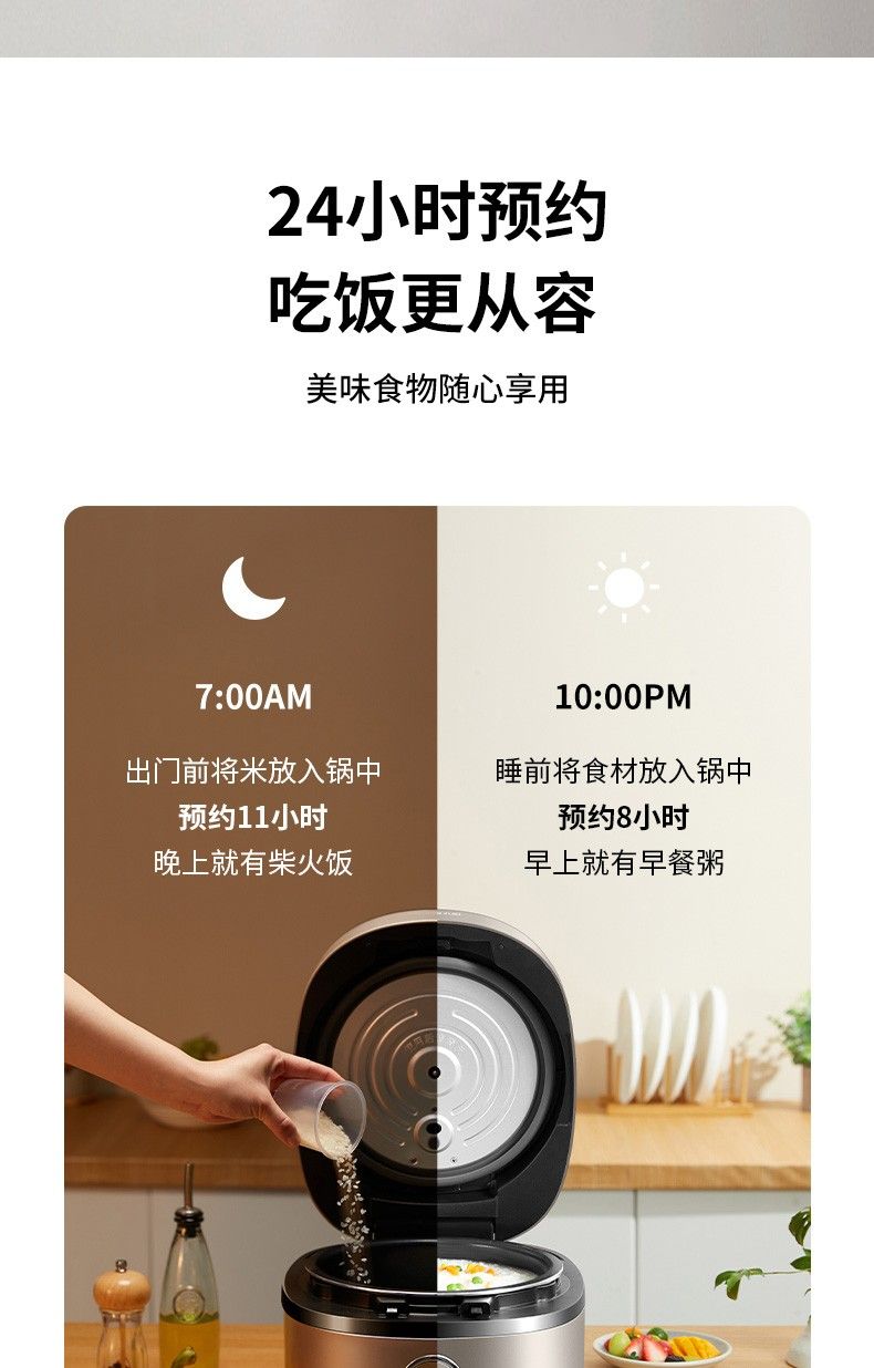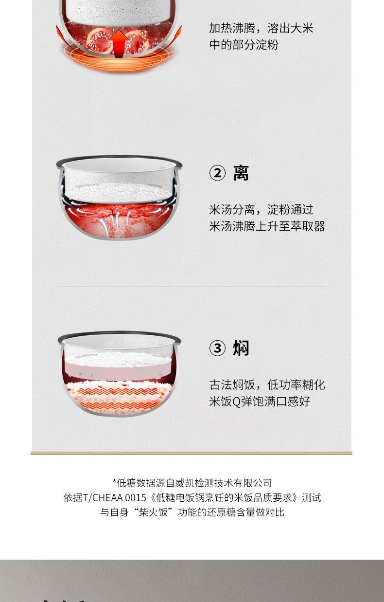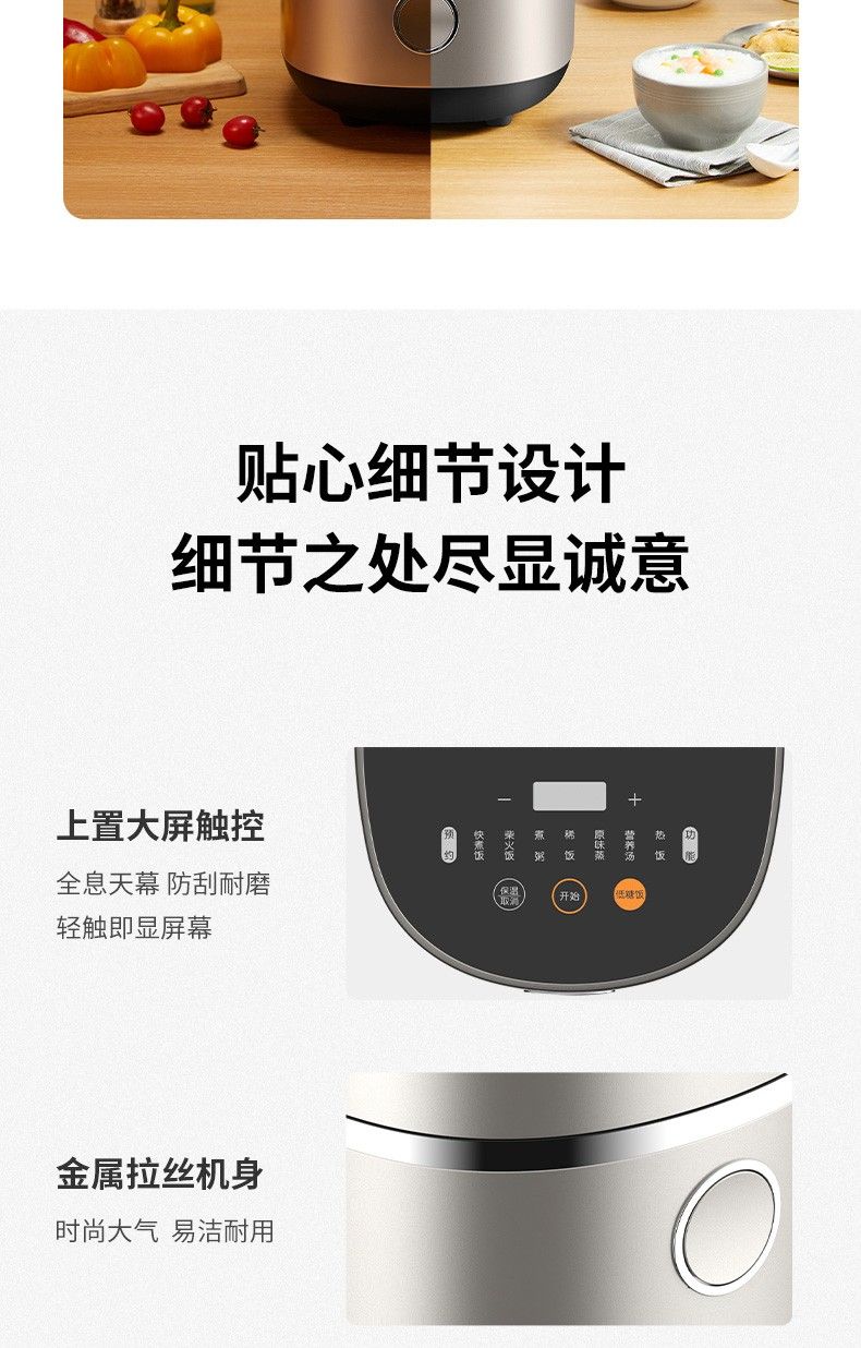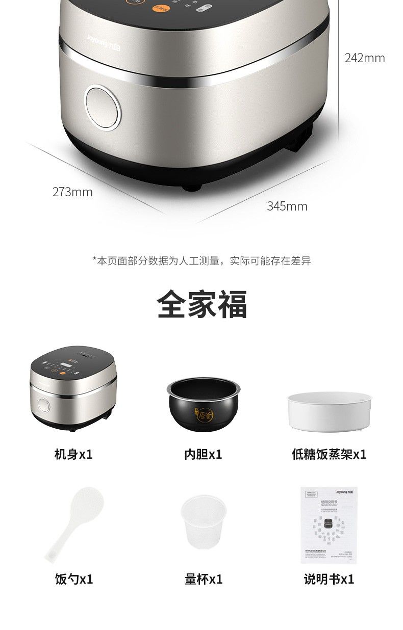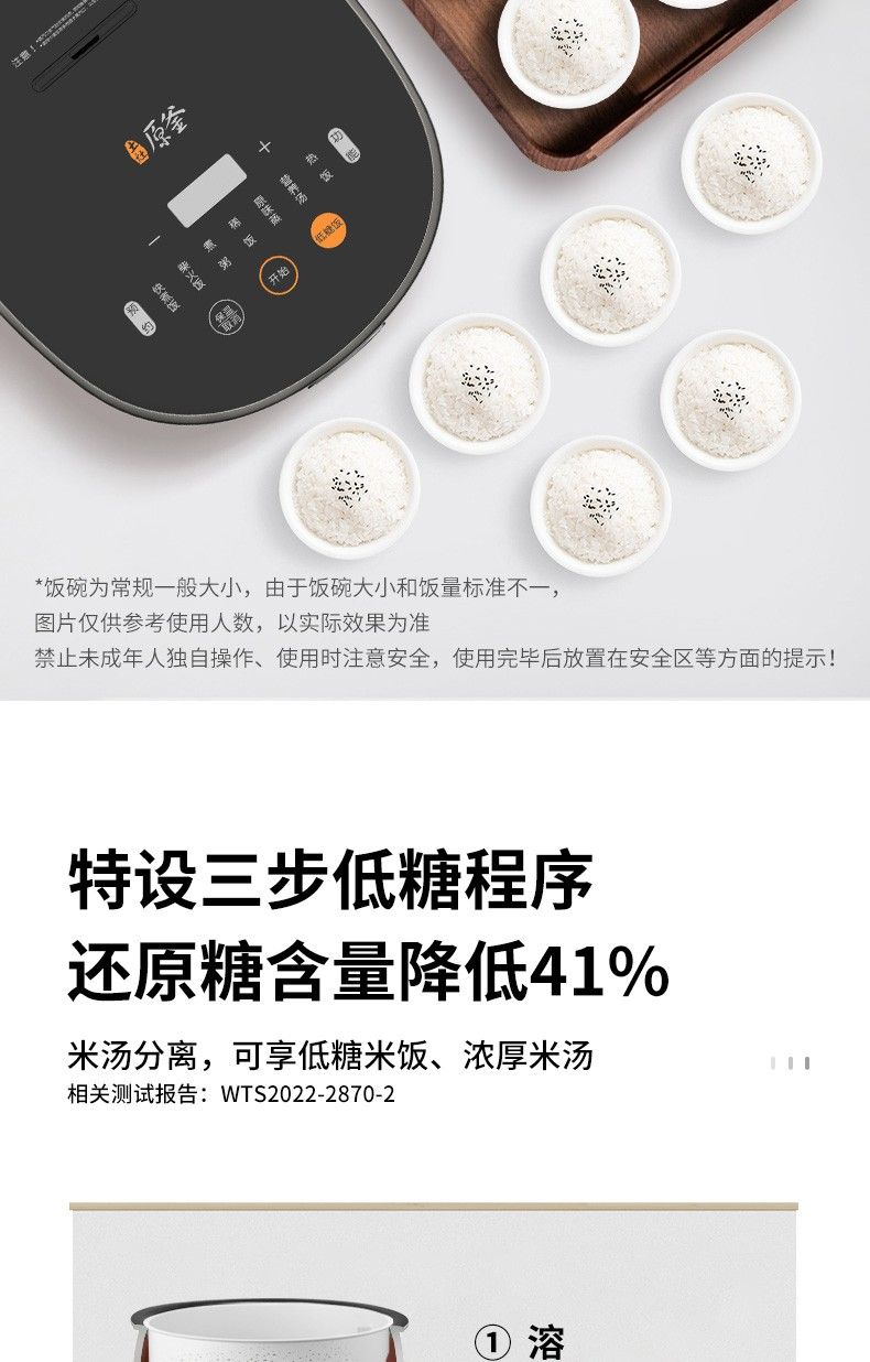 商品名称:九阳低糖电饭煲F-40FY33 米汤分离4升家用智能预约土灶原釜电饭锅 24小时预约