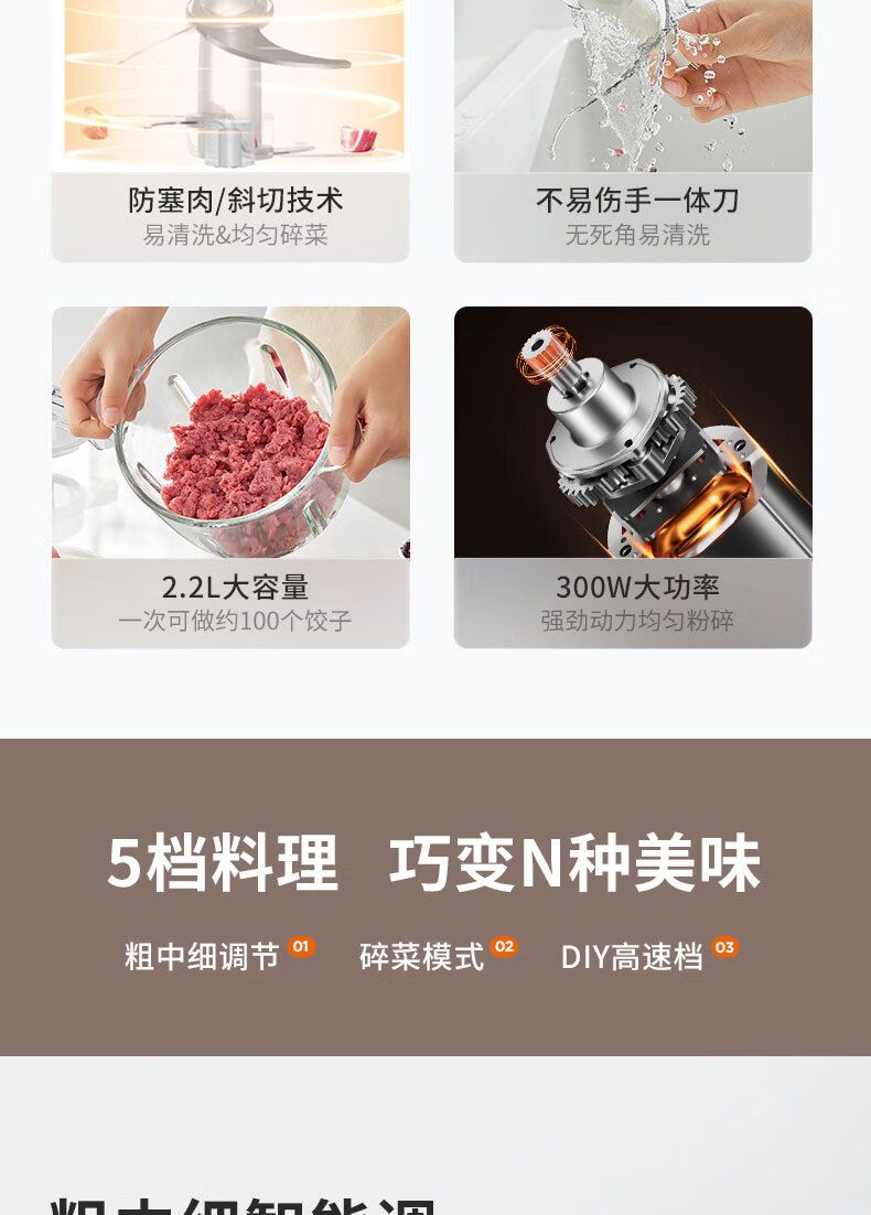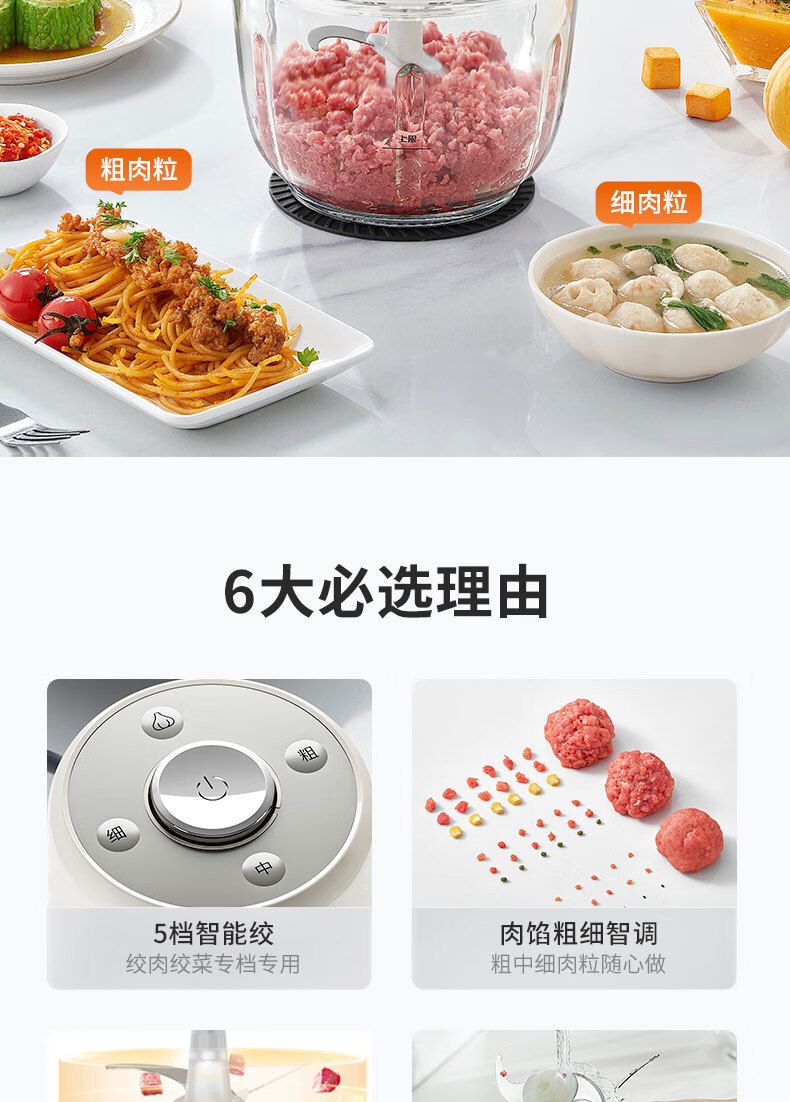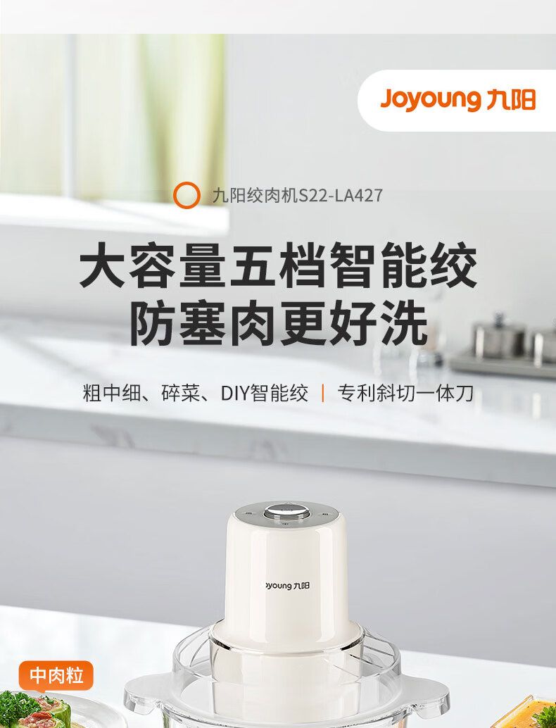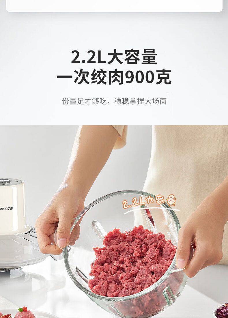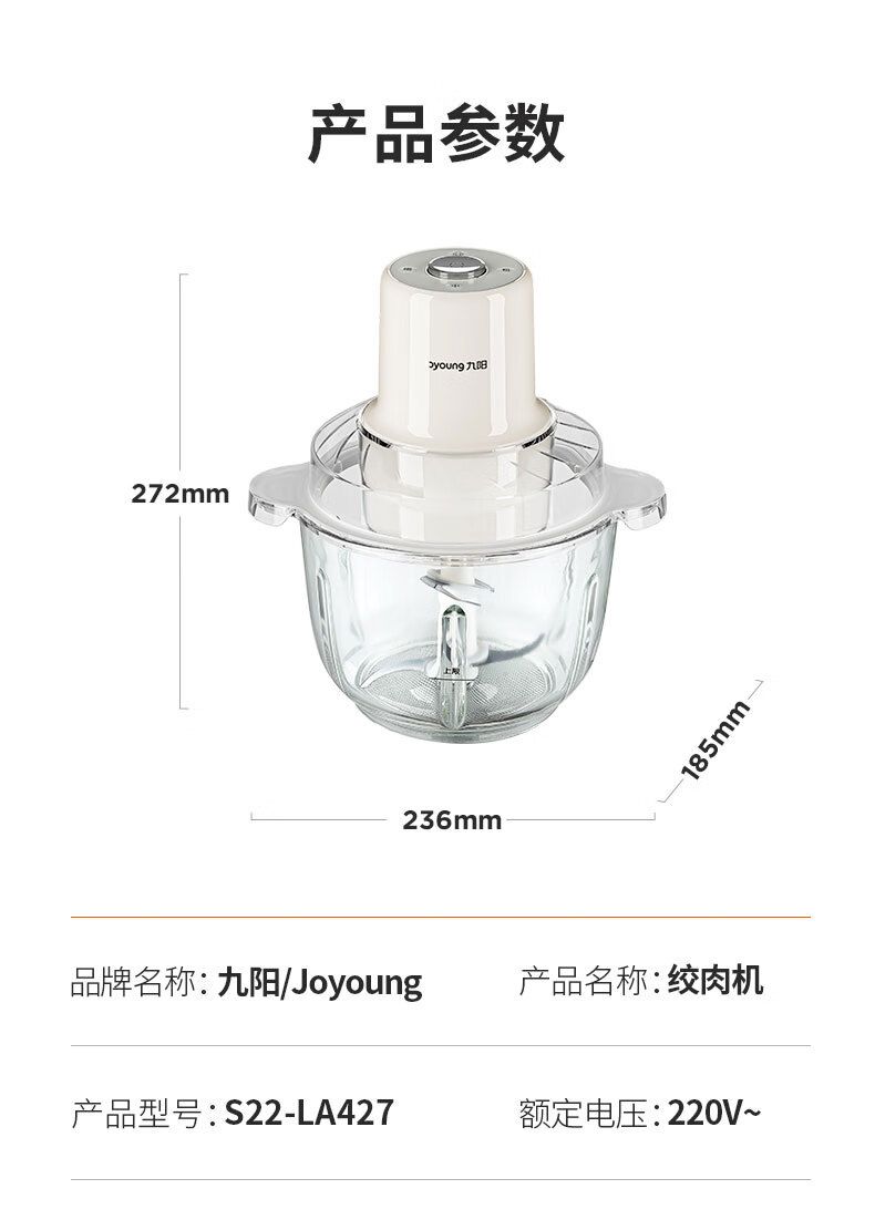 商品名称:九阳 绞肉机家用2.2L绞馅机辅食机多功能碎肉机 S22-LA427